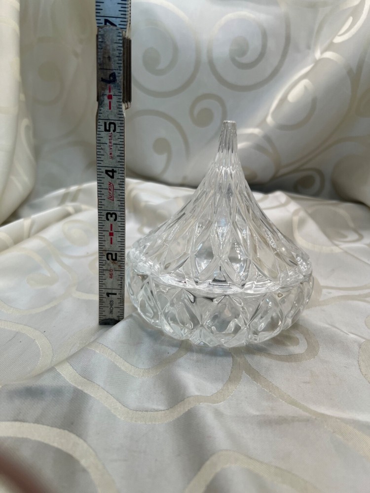 Elevate your home decor with the Godinger Shannon Crystal candy dish, an exquisite addition that combines elegance with functionality. The piece is meticulously crafted in Ireland, showcasing a timeless diamond pattern that catches the light beautifully, creating a sparkling display on any surface. The dish is designed to resemble a Hershey's Kiss, complete with a clear crystal construction that highlights its decorative nature. Measuring 5.5 inches in height and 5 inches in diameter, it offers ample space to showcase your favorite sweets or to simply serve as a statement piece. Hand wash care is recommended to preserve the dish's luster.