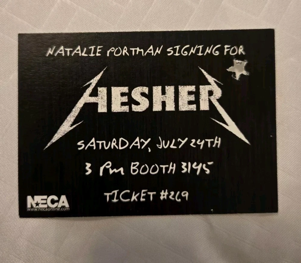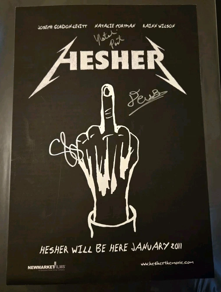Hesher CAST SIGNED x3 POSTER SDCC COMIC CON Natalie Portman NECA. This poster was signed at San Diego Comic Con 2010 at the NECA Booth. You had to win a ticket to attend the signing and that ticket will be included with the poster. It is signed by the following cast members Natalie Portman, Devin Brochu and Spencer Susser. This poster is in very good condition. It is a 12x18 poster. Minor handling wear from being passed around at the signing. It is made of a newspaper like material and does rub onto your fingers. Buyer to pay $10.00 post USA. Thanks for looking.
