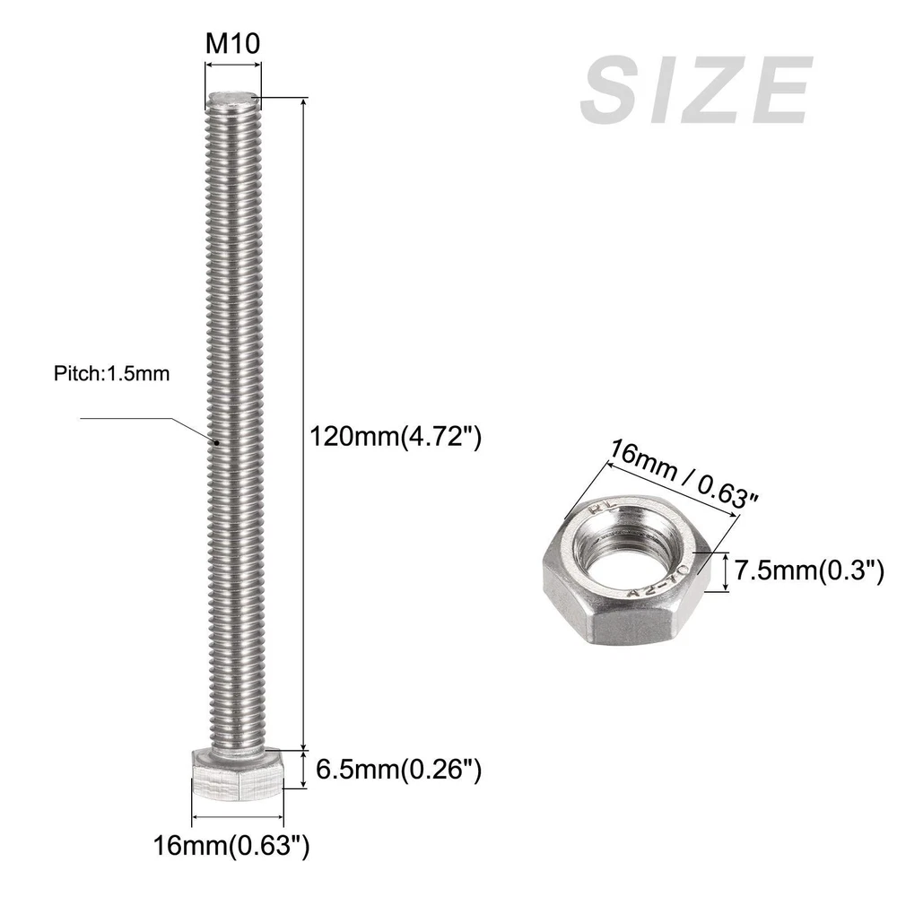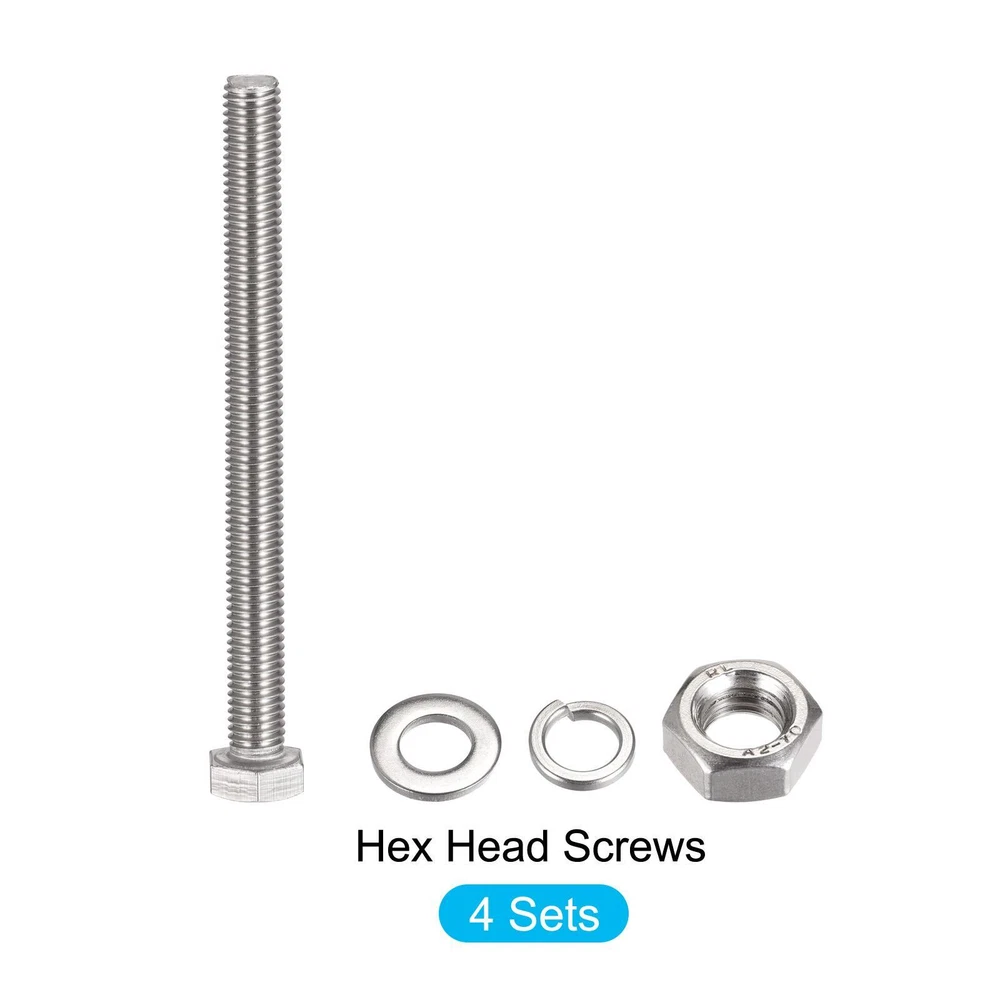 Document APPLY TO - Can be used in house construction and maintenance, machinery assembly, home furniture and appliance, DIY handmade project, etc.SPECIFICATION:Material: 304 Stainless SteelThread Size: M10x120mmThread Pitch: 1.5mmHex Head Size: 16x6.5mm/0.63"x0.26"(W*T)Nut Size: 16x7.5mm/0.63"x0.3"(W*T)Flat Washer Size: 20x2mm/0.79"x 0.08"(OD*T)Lock Washer Size: 16x2.5mm/0.63"x0.1"(OD*T)QUANTITY INCLUDED - 4sets x Bolts, Nuts, Flat & Lock Washers KitsADVANTAGE - Made of 304 stainless steel material which is durable and sturdy. It is anti-rust, anti-corrosion and can be fastened for a long time.Note: Please confirm the size of each component before buying it. Hex Head Screws Bolts, Nuts, Flat & Lock Washers Kits (M10x120mm) 4Sets APPLY TO - Can be used in house construction and maintenance, machinery assembly, home furniture and appliance, DIY handmade project, etc. SPECIFICATION: Material: 304 Stainless Steel Thread Size: M10x120mm Thread Pitch: 1.5mm Hex Head Size: 16x6.5mm/0.63"x0.26"(W*T) Nut Size: 16x7.5mm/0.63"x0.3"(W*T) Flat Washer Size: 20x2mm/0.79"x 0.08"(OD*T) Lock Washer Size: 16x2.5mm/0.63"x0.1"(OD*T) QUANTITY INCLUDED - 4sets x Bolts, Nuts, Flat & Lock Washers Kits ADVANTAGE - Made of 304 stainless steel material which is durable and sturdy. It is anti-rust, anti-corrosion and can be fastened for a long time. Note: Please confirm the size of each component before buying it. Hot Item Payment 1.We accept eBay payment . 2.Payment must be received within 7 business days of auction closing. Shipping 1.We ship to your eBay or Paypal address. Please make sure your eBay and Paypal address is correct before you pay. 2.Items will be shipped within 1-3 business day when we received payment. 3.Delivery time depends on destination and other factors. Description Policy Hex Head Screws Bolts, Nuts, Flat & Lock Washers Kits (M10x120mm) 4Sets APPLY TO - Can be used in house construction and maintenance, machinery assembly, home furniture and appliance, DIY handmade project, etc. SPECIFICATION: Material: 304 Stainless Steel Thread Size: M10x120mm Thread Pitch: 1.5mm Hex Head Size: 16x6.5mm/0.63"x0.26"(W*T) Nut Size: 16x7.5mm/0.63"x0.3"(W*T) Flat Washer Size: 20x2mm/0.79"x 0.08"(OD*T) Lock Washer Size: 16x2.5mm/0.63"x0.1"(OD*T) QUANTITY INCLUDED - 4sets x Bolts, Nuts, Flat & Lock Washers Kits ADVANTAGE - Made of 304 stainless steel material which is durable and sturdy. It is anti-rust, anti-corrosion and can be fastened for a long time. Note: Please confirm the size of each component before buying it. Hot Item Payment 1.We accept eBay payment . 2.Payment must be received within 7 business days of auction closing. Shipping 1.We ship to your eBay or Paypal address. Please make sure your eBay and Paypal address is correct before you pay. 2.Items will be shipped within 1-3 business day when we received payment. 3.Delivery time depends on destination and other factors.