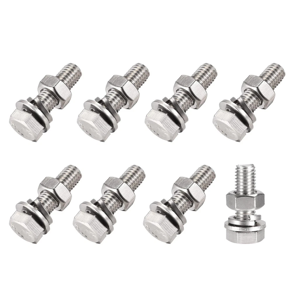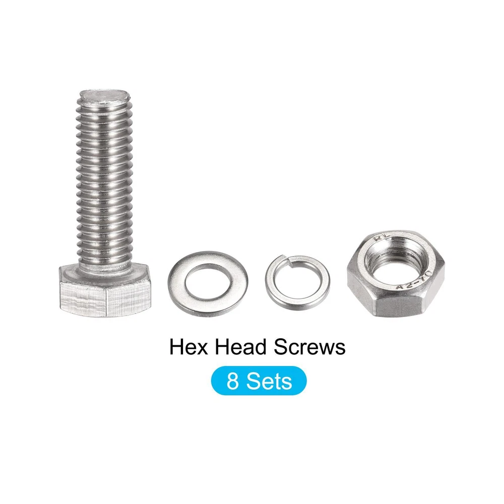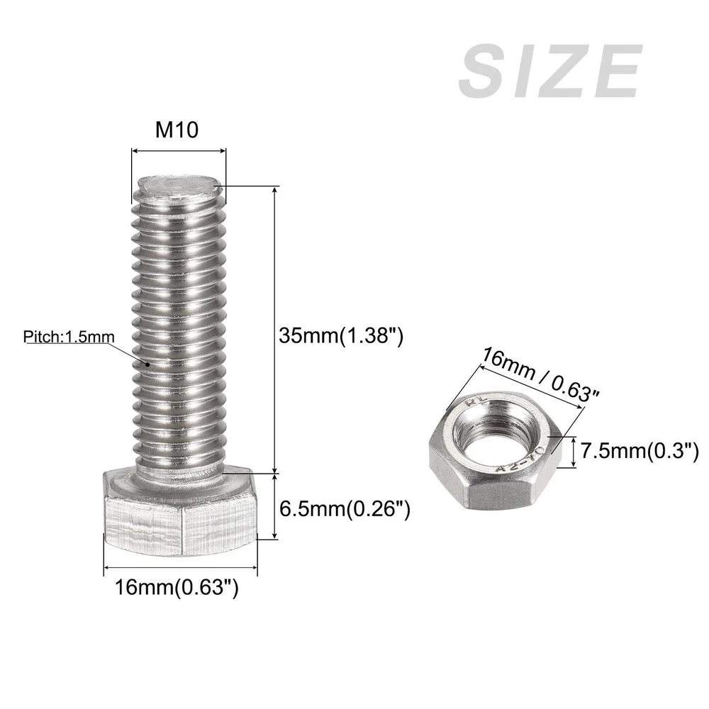 Document APPLY TO - Can be used in house construction and maintenance, machinery assembly, home furniture and appliance, DIY handmade project, etc.SPECIFICATION:Material: 304 Stainless SteelThread Size: M10x35mmThread Pitch: 1.5mmHex Head Size: 16x6.5mm/0.63"x0.26"(W*T)Nut Size: 16x7.5mm/0.63"x0.3"(W*T)Flat Washer Size: 20x2mm/0.79"x 0.08"(OD*T)Lock Washer Size: 16x2.5mm/0.63"x0.1"(OD*T)QUANTITY INCLUDED - 8sets x Bolts, Nuts, Flat & Lock Washers KitsADVANTAGE - Made of 304 stainless steel material which is durable and sturdy. It is anti-rust, anti-corrosion and can be fastened for a long time.Note: Please confirm the size of each component before buying it. Hex Head Screws Bolts, Nuts, Flat & Lock Washers Kits (M10x35mm) 8Sets APPLY TO - Can be used in house construction and maintenance, machinery assembly, home furniture and appliance, DIY handmade project, etc. SPECIFICATION: Material: 304 Stainless Steel Thread Size: M10x35mm Thread Pitch: 1.5mm Hex Head Size: 16x6.5mm/0.63"x0.26"(W*T) Nut Size: 16x7.5mm/0.63"x0.3"(W*T) Flat Washer Size: 20x2mm/0.79"x 0.08"(OD*T) Lock Washer Size: 16x2.5mm/0.63"x0.1"(OD*T) QUANTITY INCLUDED - 8sets x Bolts, Nuts, Flat & Lock Washers Kits ADVANTAGE - Made of 304 stainless steel material which is durable and sturdy. It is anti-rust, anti-corrosion and can be fastened for a long time. Note: Please confirm the size of each component before buying it. Hot Item Payment 1.We accept eBay payment . 2.Payment must be received within 7 business days of auction closing. Shipping 1.We ship to your eBay or Paypal address. Please make sure your eBay and Paypal address is correct before you pay. 2.Items will be shipped within 1-3 business day when we received payment. 3.Delivery time depends on destination and other factors. Description Policy Hex Head Screws Bolts, Nuts, Flat & Lock Washers Kits (M10x35mm) 8Sets APPLY TO - Can be used in house construction and maintenance, machinery assembly, home furniture and appliance, DIY handmade project, etc. SPECIFICATION: Material: 304 Stainless Steel Thread Size: M10x35mm Thread Pitch: 1.5mm Hex Head Size: 16x6.5mm/0.63"x0.26"(W*T) Nut Size: 16x7.5mm/0.63"x0.3"(W*T) Flat Washer Size: 20x2mm/0.79"x 0.08"(OD*T) Lock Washer Size: 16x2.5mm/0.63"x0.1"(OD*T) QUANTITY INCLUDED - 8sets x Bolts, Nuts, Flat & Lock Washers Kits ADVANTAGE - Made of 304 stainless steel material which is durable and sturdy. It is anti-rust, anti-corrosion and can be fastened for a long time. Note: Please confirm the size of each component before buying it. Hot Item Payment 1.We accept eBay payment . 2.Payment must be received within 7 business days of auction closing. Shipping 1.We ship to your eBay or Paypal address. Please make sure your eBay and Paypal address is correct before you pay. 2.Items will be shipped within 1-3 business day when we received payment. 3.Delivery time depends on destination and other factors.