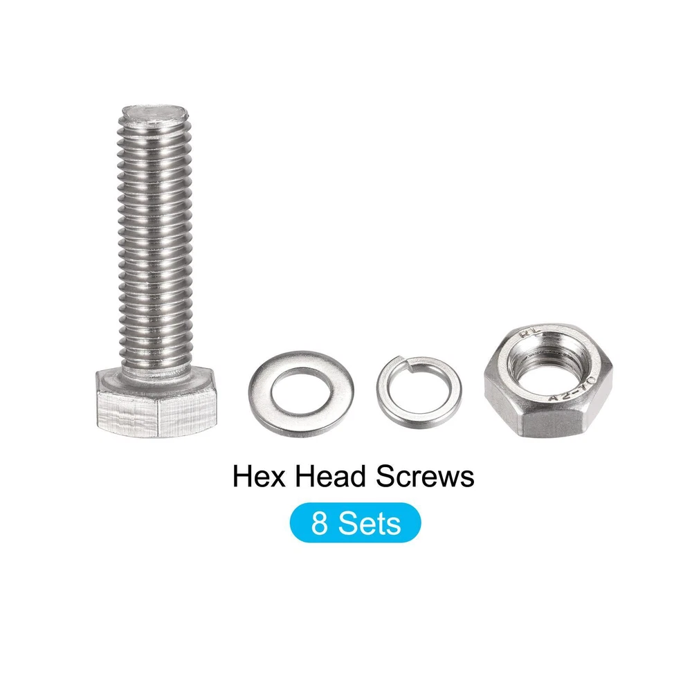 Document APPLY TO - Can be used in house construction and maintenance, machinery assembly, home furniture and appliance, DIY handmade project, etc.SPECIFICATION:Material: 304 Stainless SteelThread Size: M10x40mmThread Pitch: 1.5mmHex Head Size: 16x6.5mm/0.63"x0.26"(W*T)Nut Size: 16x7.5mm/0.63"x0.3"(W*T)Flat Washer Size: 20x2mm/0.79"x 0.08"(OD*T)Lock Washer Size: 16x2.5mm/0.63"x0.1"(OD*T)QUANTITY INCLUDED - 8sets x Bolts, Nuts, Flat & Lock Washers KitsADVANTAGE - Made of 304 stainless steel material which is durable and sturdy. It is anti-rust, anti-corrosion and can be fastened for a long time.Note: Please confirm the size of each component before buying it. Hex Head Screws Bolts, Nuts, Flat & Lock Washers Kits (M10x40mm) 8Sets APPLY TO - Can be used in house construction and maintenance, machinery assembly, home furniture and appliance, DIY handmade project, etc. SPECIFICATION: Material: 304 Stainless Steel Thread Size: M10x40mm Thread Pitch: 1.5mm Hex Head Size: 16x6.5mm/0.63"x0.26"(W*T) Nut Size: 16x7.5mm/0.63"x0.3"(W*T) Flat Washer Size: 20x2mm/0.79"x 0.08"(OD*T) Lock Washer Size: 16x2.5mm/0.63"x0.1"(OD*T) QUANTITY INCLUDED - 8sets x Bolts, Nuts, Flat & Lock Washers Kits ADVANTAGE - Made of 304 stainless steel material which is durable and sturdy. It is anti-rust, anti-corrosion and can be fastened for a long time. Note: Please confirm the size of each component before buying it. Hot Item Payment 1.We accept eBay payment . 2.Payment must be received within 7 business days of auction closing. Shipping 1.We ship to your eBay or Paypal address. Please make sure your eBay and Paypal address is correct before you pay. 2.Items will be shipped within 1-3 business day when we received payment. 3.Delivery time depends on destination and other factors. Description Policy Hex Head Screws Bolts, Nuts, Flat & Lock Washers Kits (M10x40mm) 8Sets APPLY TO - Can be used in house construction and maintenance, machinery assembly, home furniture and appliance, DIY handmade project, etc. SPECIFICATION: Material: 304 Stainless Steel Thread Size: M10x40mm Thread Pitch: 1.5mm Hex Head Size: 16x6.5mm/0.63"x0.26"(W*T) Nut Size: 16x7.5mm/0.63"x0.3"(W*T) Flat Washer Size: 20x2mm/0.79"x 0.08"(OD*T) Lock Washer Size: 16x2.5mm/0.63"x0.1"(OD*T) QUANTITY INCLUDED - 8sets x Bolts, Nuts, Flat & Lock Washers Kits ADVANTAGE - Made of 304 stainless steel material which is durable and sturdy. It is anti-rust, anti-corrosion and can be fastened for a long time. Note: Please confirm the size of each component before buying it. Hot Item Payment 1.We accept eBay payment . 2.Payment must be received within 7 business days of auction closing. Shipping 1.We ship to your eBay or Paypal address. Please make sure your eBay and Paypal address is correct before you pay. 2.Items will be shipped within 1-3 business day when we received payment. 3.Delivery time depends on destination and other factors.