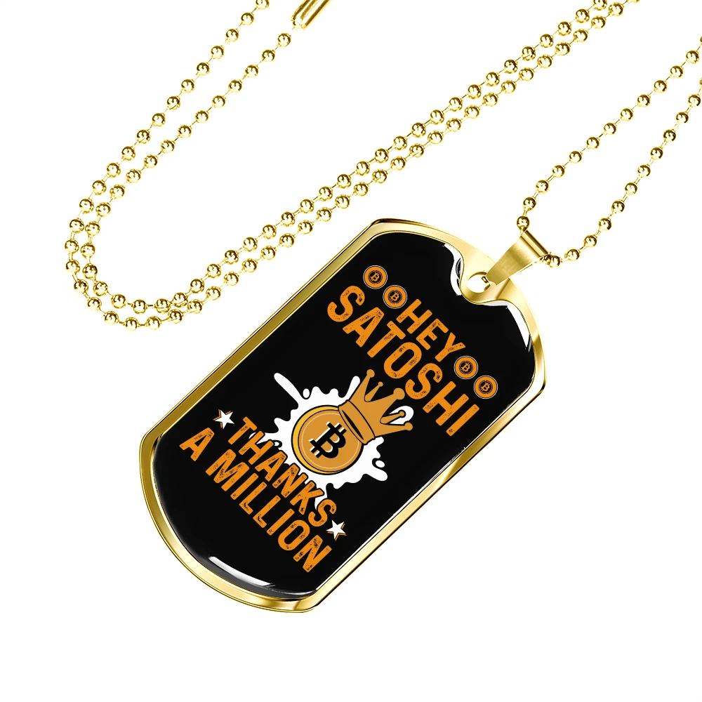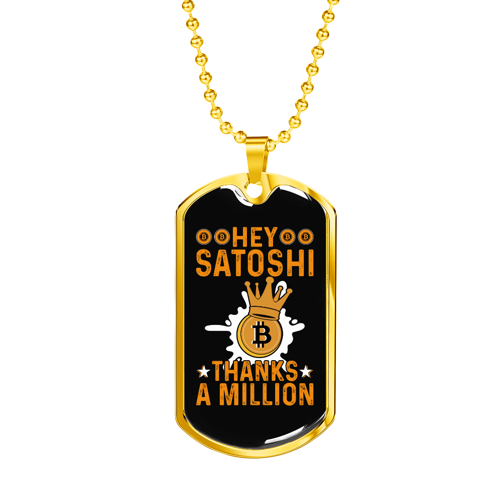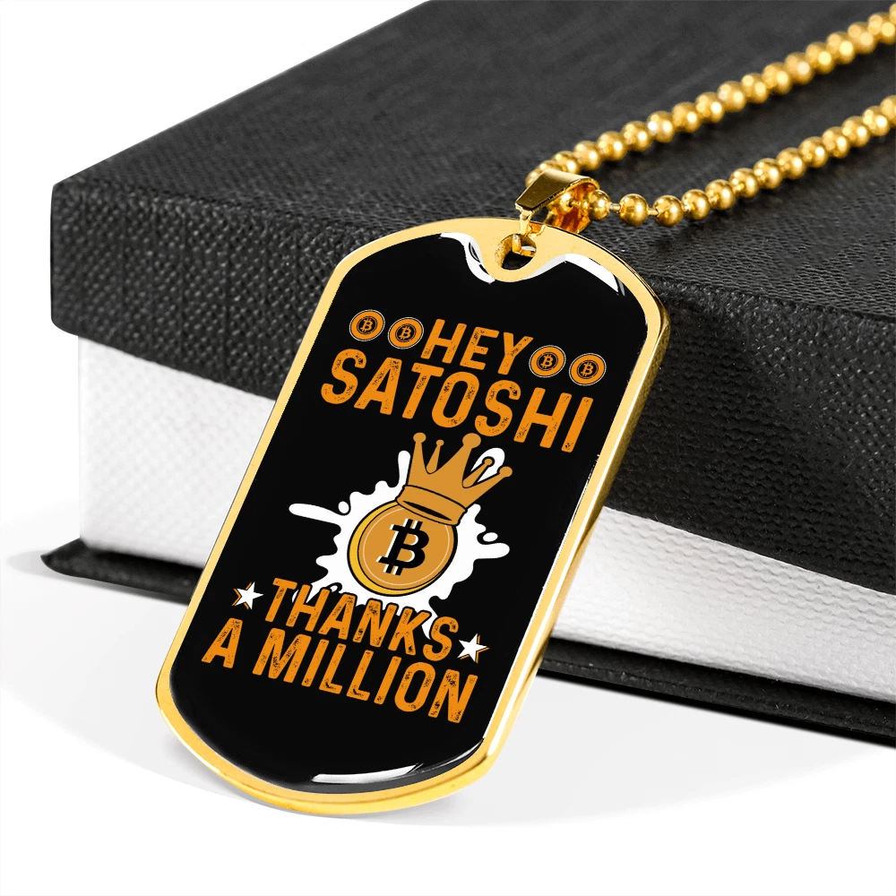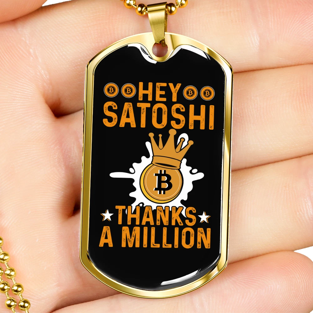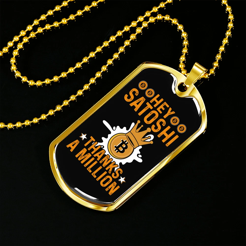 Hey Satoshi Crypto Necklace Stainless Steel or 18k Gold Dog Tag with 24-Inch Chain