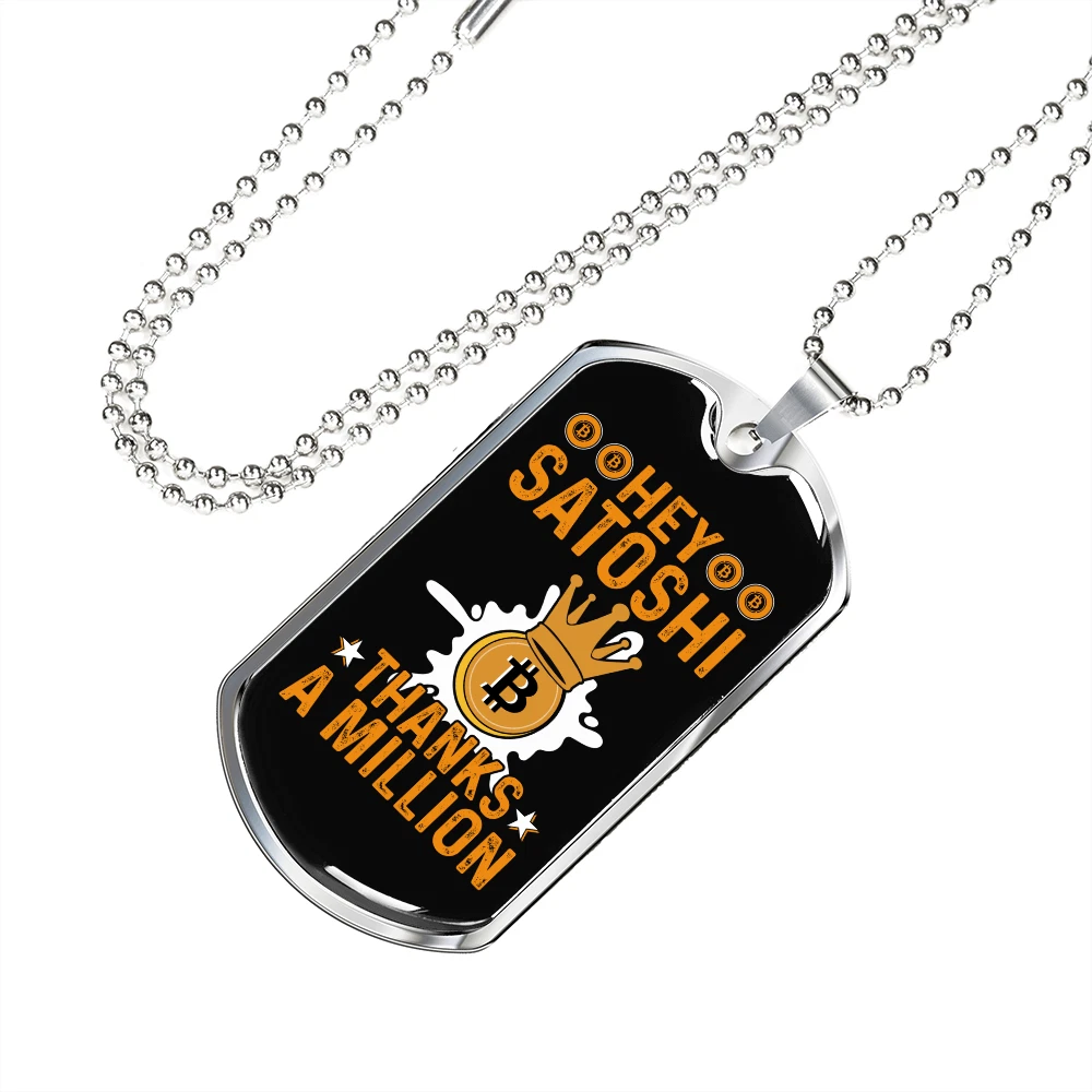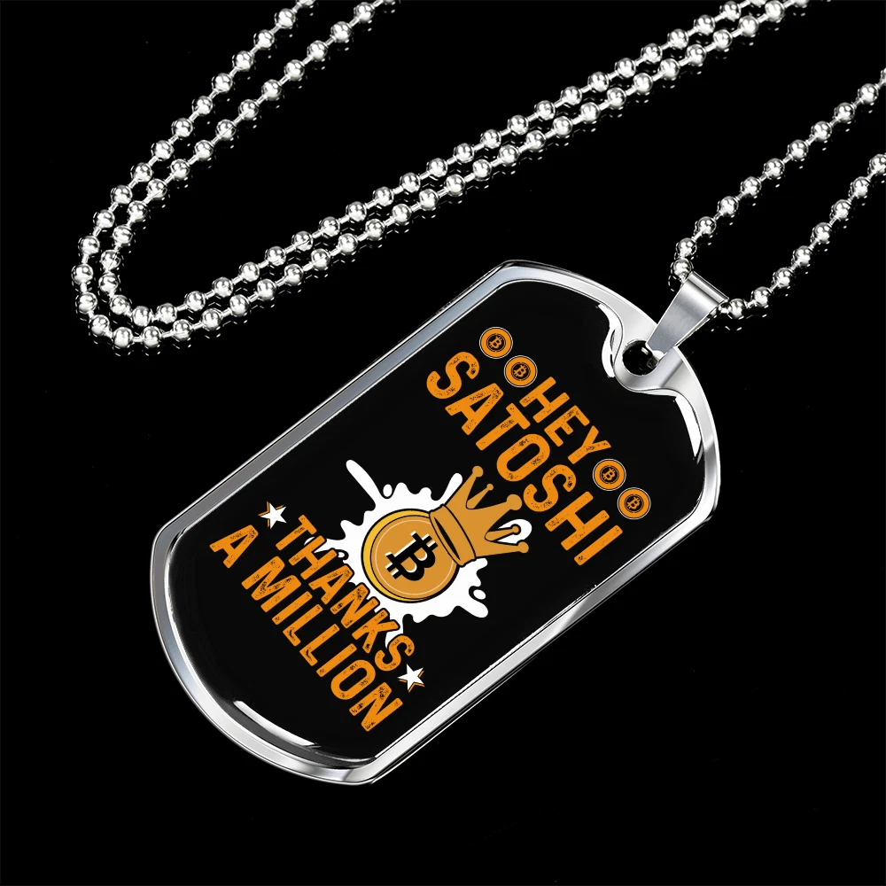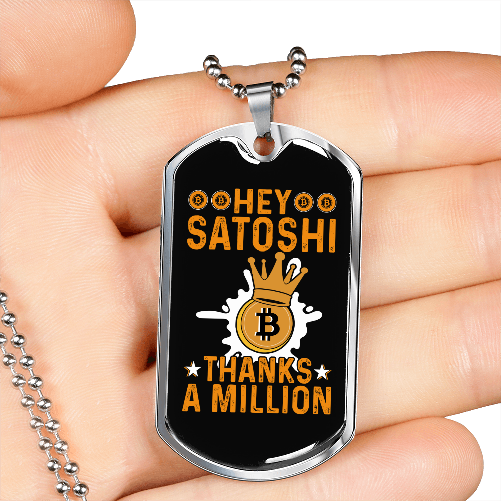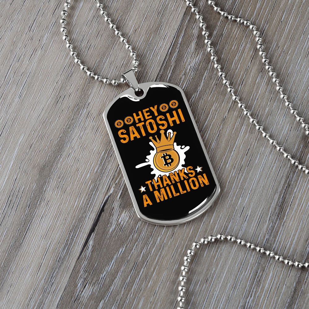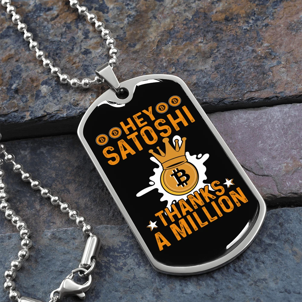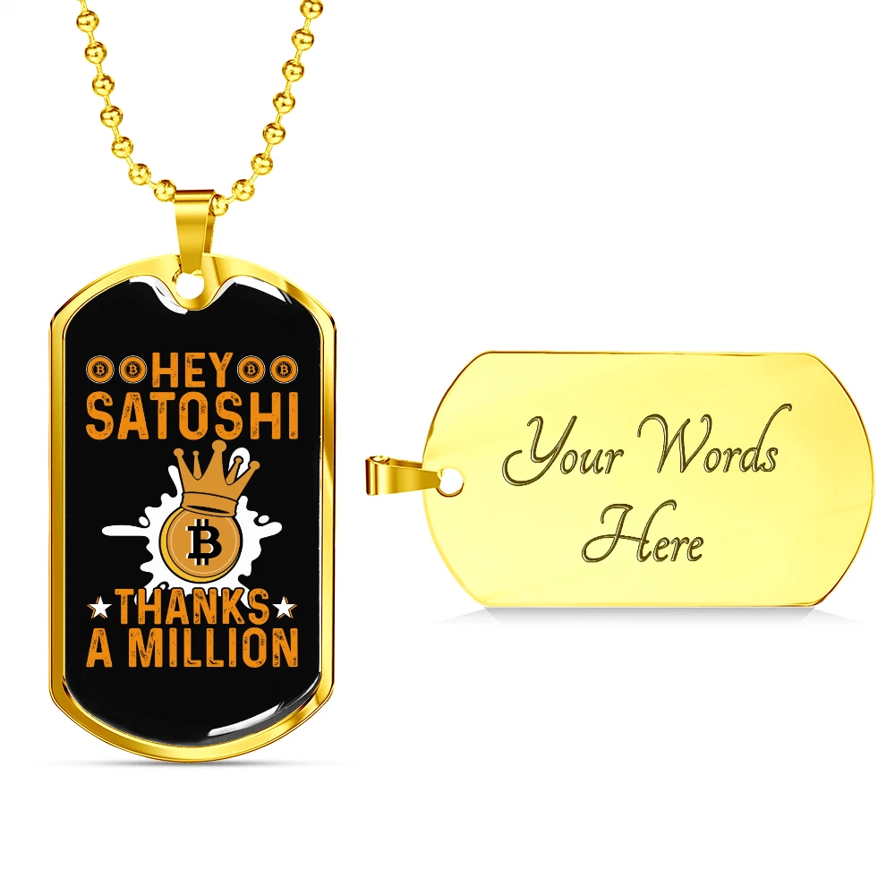 Hey Satoshi Crypto Necklace Stainless Steel or 18k Gold Dog Tag with 24-Inch Chain