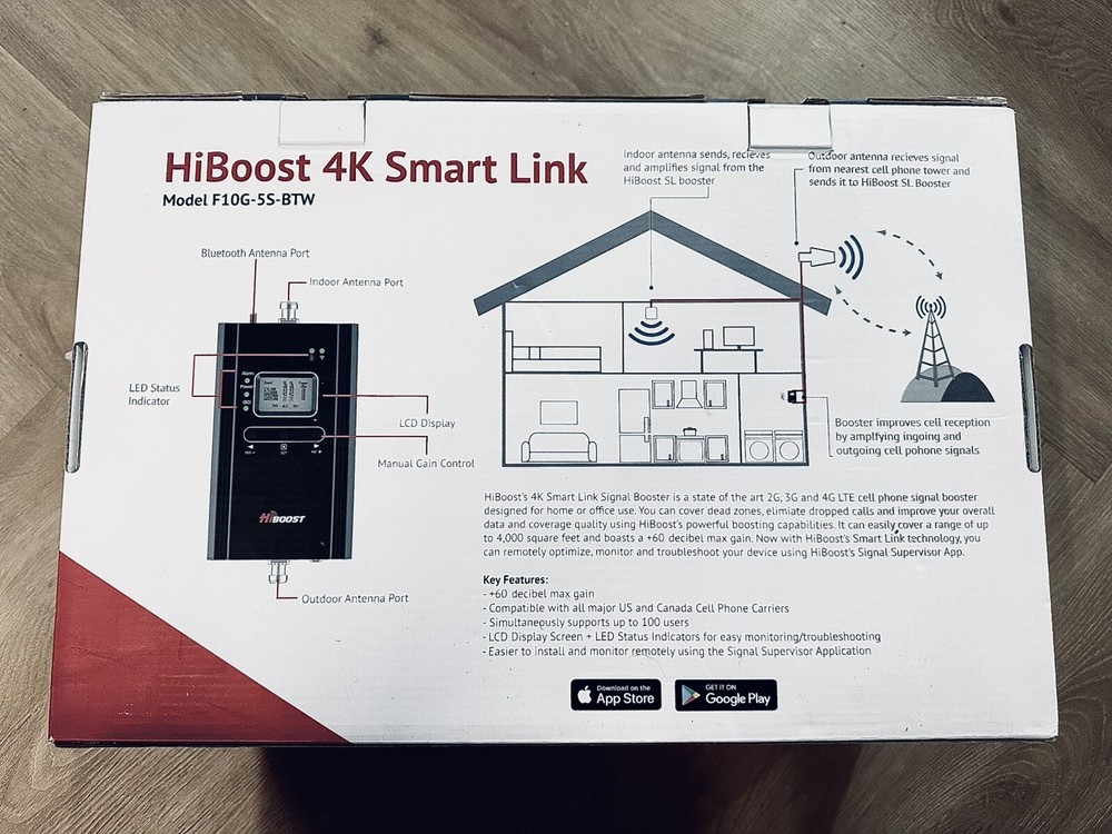 Enhance your cell phone signal with the HiBoost F10G-5S-IOT 4k Smart Link Cell Phone Signal Booster System. This system comes with a remote antenna that allows for indoor and outdoor installation, making it perfect for any location. The signal booster is made of durable metal and is compatible with a wide range of cell phone brands and models. With its wireless repeater and multi-user connectivity, this signal booster is perfect for those who need a reliable and stable cell phone connection. The HiBoost F10G-5S-IOT 4k Smart Link Cell Phone Signal Booster System is easy to install and comes with all the necessary items included. Get a boosted signal and enjoy seamless connectivity with this high-quality signal booster system.