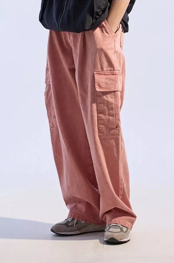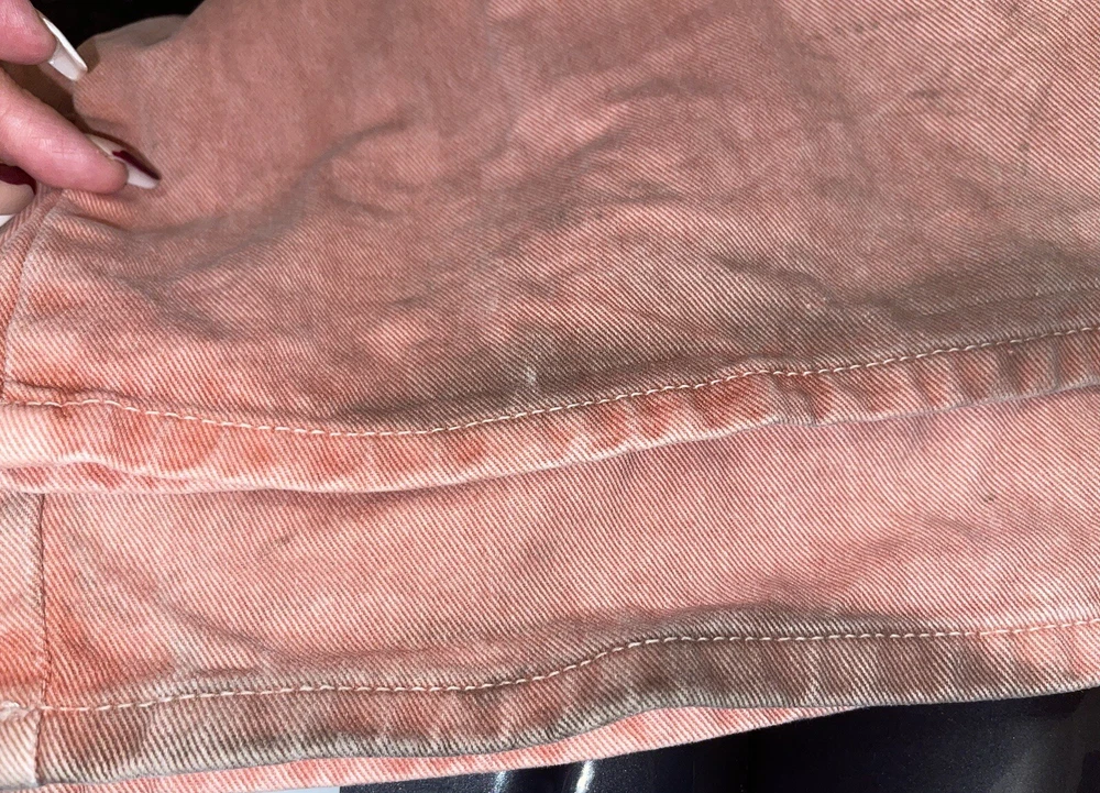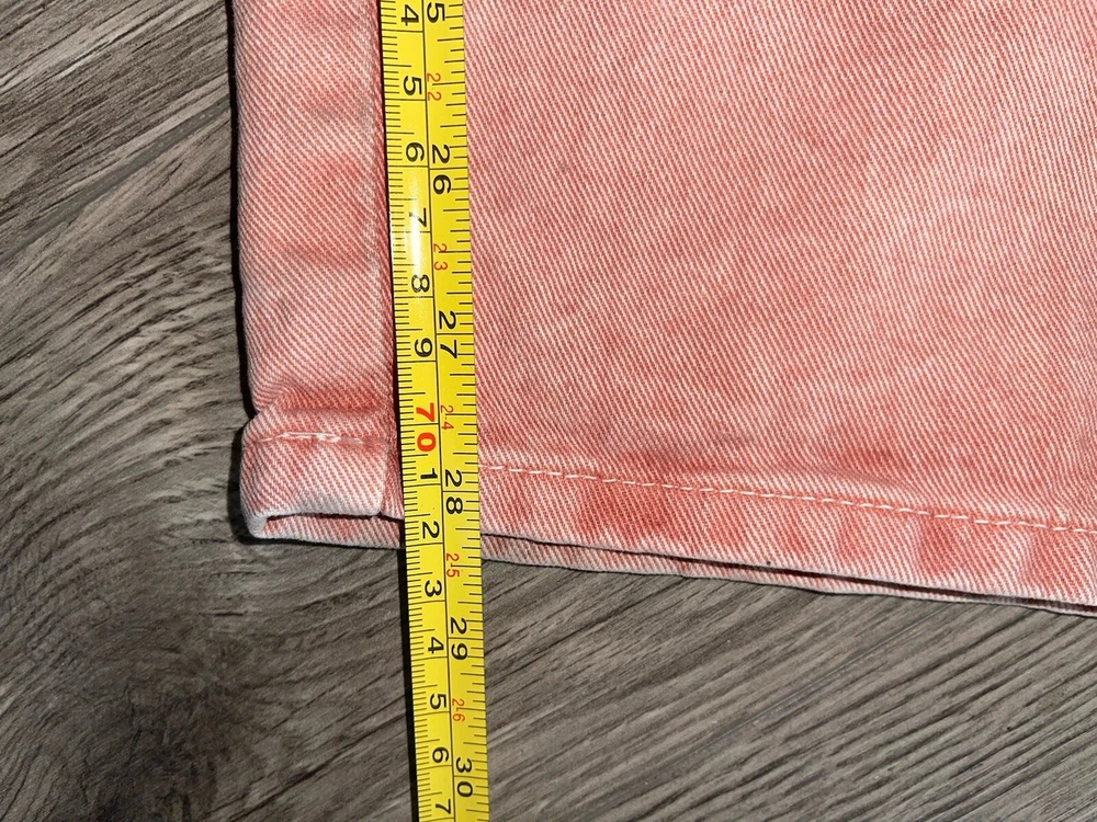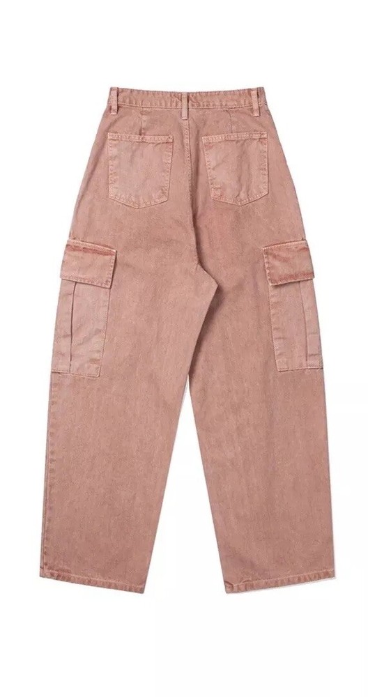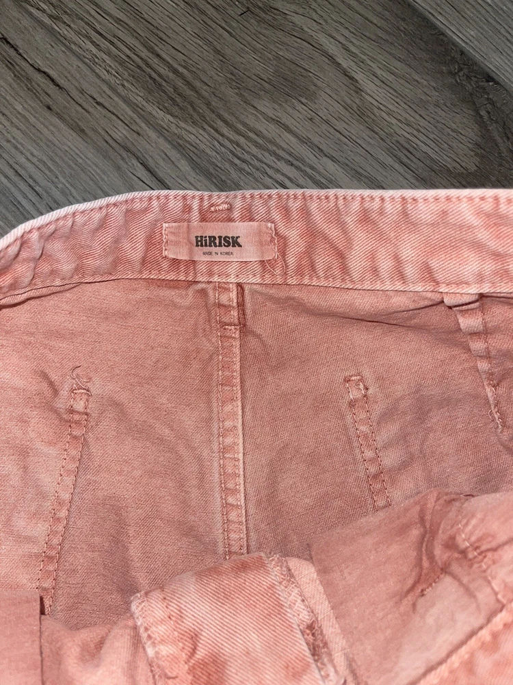 Excellent used condition HiRisk Men’s Wide Leg Cargo Denim Pants Size Medium . Super cool and stylish and wide leg Pinkish/Soft red cargo jeans . They are described as pale pink but I see it as a very dull red lol . Great condition with the exception of the he on the bottom back As shown in the photos.