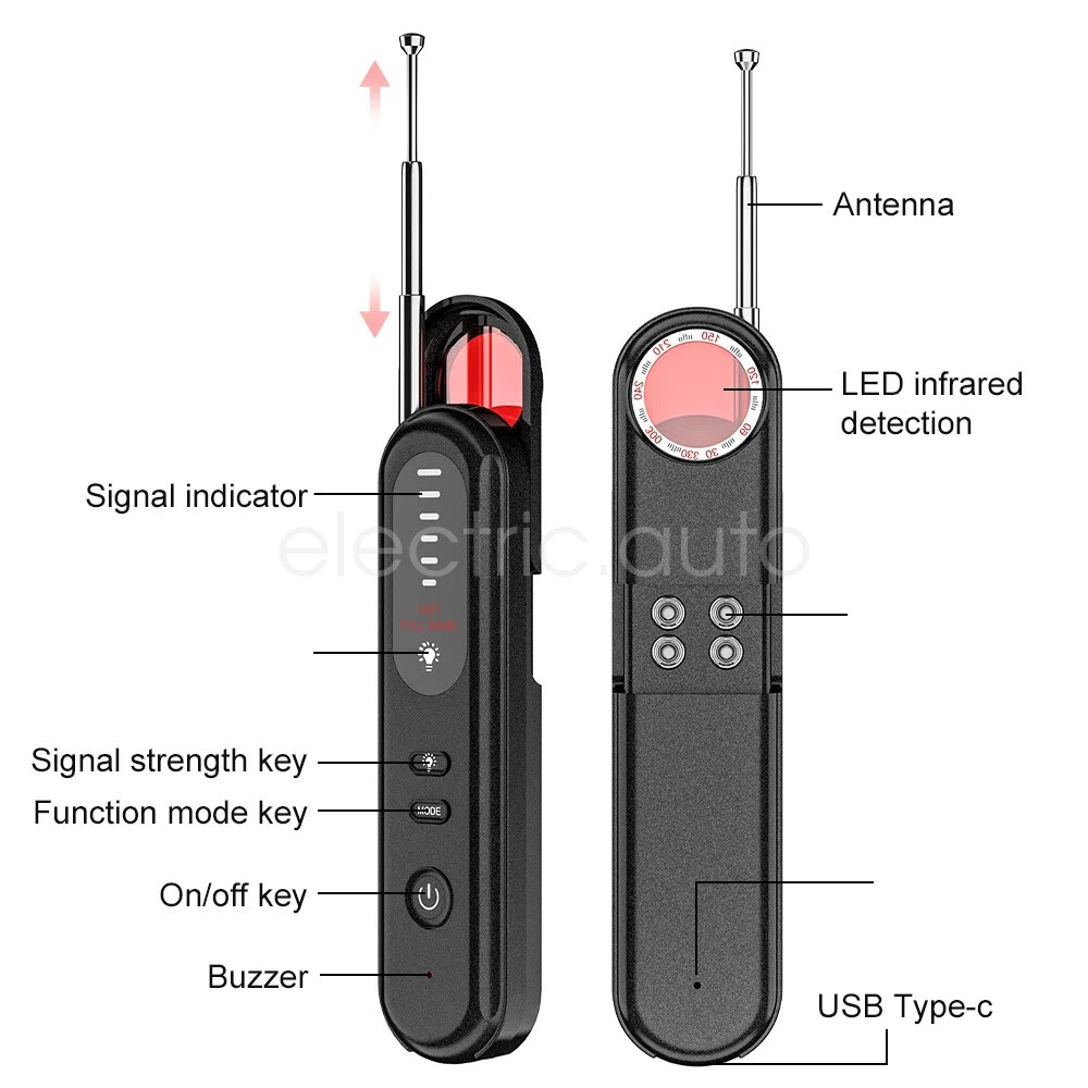 Product View Detail Features: 【Professional Anti-spy Detector】Adopting advanced AI chip, it can easily and quickly detect wireless cameras, VHF/UHF transmitters, GSM/3G/4G vulnerabilities, GSM/3G/4G GPS trackers, wired sources and strong magnetic field signals. 【 Wide Frequency Range】 The detection frequency range is from 1MHZ to 6.5GHZ, capable of detecting modern communications including GSM, 3G, 4G, 5G, Bluetooth and Wi-Fi 2.4G and 5.8G, 2 working modes: mute and siren sound, when the detector senses a signal, it will emit an alarm sound and the indicator light blinks to remind the user. 【 Adjustable Sensitivity 】 5-level adjustable threshold, wide range frequency detection.5-segment bar graph indicatorPhysical attenuator provides the ability to locate strong RF sources. 【Portable and Easy to Use】 The antenna is completely hidden inside this anti-spy camera detector with very small size. It is easy to carry. You can conduct covert operations, especially when sweeping sensitive areas with spy cameras. 【Stretch and Adjust】The color filter can be freely stretched and adjusted. When you need to use it, you can slide it upward to open the visual inspection lens. After use, you can slide down to hide it completely, very portable. 【COMPREHENSIVE PRIVACY PROTECTION】 Designed to target car trackers, cell phone spyware, wireless pinhole cameras, surveillance cameras, casino fraud and cheating devices on the market. The device meets the investigative needs of individuals and law enforcement agencies, protecting your privacy and security in all aspects. Specification: Product Name: Camera Detector Antenna signal: FPC gold-plated antenna Wireless sensitivity: 5-speed adjustable Signal detection range: 5cm-10 meters Detection Frequency Range:1MHZ~6.5GHZ Battery capacity: 500mAh Operating time: 30 days Charging interface: Type-C Operating Temperature: -20℃~50 Operating humidity: 20%-80 Product size: 110*28*13mm Package Included: 1* Detector 1* User manual 1* Type-C data cable Attention: 1.According to the light color may vary! 2.Please allow a slight 1cm difference due to manual measurement! 3. Thank you for your understanding and attention, wish you a pleasant shopping experience! Shipping Policy Payment Method Returns Policy Shipping Policy We only accept your Ebay Address ,Please Make sure it's 100% right. The items you ordered will be shipped out in 1 business day by Hong Kong Air Mail when your payment is clear. The arrival time is 5-20 business days to United States usually. We maintain high standards of excellence and strive for 100% customer satisfaction! Feedback is very important to us. We request that you contact us immediately BEFORE you give us neutralor or negative feedback, so that we can satisfactorily address your concerns. Payment Method Returns Policy Copyright © 2017 DataCaciques Anti-Spy Hidden Camera Detector Prevent Monitoring Wireless Signal Bug Detector Home Payment Shipping About us Contact us Store Categories Store Categories Consumer Electronics PC&Tablet Accessories Mobile Phone Accessories Sound&Vision Headphones Watches Camera Led Lights Others Auto Car Accessories Lights Others Motorcycle Motor Accessories Lights Others Headlamp&Torch Others Other Product View Detail Features: 【Professional Anti-spy Detector】Adopting advanced AI chip, it can easily and quickly detect wireless cameras, VHF/UHF transmitters, GSM/3G/4G vulnerabilities, GSM/3G/4G GPS trackers, wired sources and strong magnetic field signals. 【 Wide Frequency Range】 The detection frequency range is from 1MHZ to 6.5GHZ, capable of detecting modern communications including GSM, 3G, 4G, 5G, Bluetooth and Wi-Fi 2.4G and 5.8G, 2 working modes: mute and siren sound, when the detector senses a signal, it will emit an alarm sound and the indicator light blinks to remind the user. 【 Adjustable Sensitivity 】 5-level adjustable threshold, wide range frequency detection.5-segment bar graph indicatorPhysical attenuator provides the ability to locate strong RF sources. 【Portable and Easy to Use】 The antenna is completely hidden inside this anti-spy camera detector with very small size. It is easy to carry. You can conduct covert operations, especially when sweeping sensitive areas with spy cameras. 【Stretch and Adjust】The color filter can be freely stretched and adjusted. When you need to use it, you can slide it upward to open the visual inspection lens. After use, you can slide down to hide it completely, very portable. 【COMPREHENSIVE PRIVACY PROTECTION】 Designed to target car trackers, cell phone spyware, wireless pinhole cameras, surveillance cameras, casino fraud and cheating devices on the market. The device meets the investigative needs of individuals and law enforcement agencies, protecting your privacy and security in all aspects. Specification: Product Name: Camera Detector Antenna signal: FPC gold-plated antenna Wireless sensitivity: 5-speed adjustable Signal detection range: 5cm-10 meters Detection Frequency Range:1MHZ~6.5GHZ Battery capacity: 500mAh Operating time: 30 days Charging interface: Type-C Operating Temperature: -20℃~50 Operating humidity: 20%-80 Product size: 110*28*13mm Package Included: 1* Detector 1* User manual 1* Type-C data cable Attention: 1.According to the light color may vary! 2.Please allow a slight 1cm difference due to manual measurement! 3. Thank you for your understanding and attention, wish you a pleasant shopping experience! Shipping Policy Payment Method Returns Policy Shipping Policy We only accept your Ebay Address ,Please Make sure it's 100% right. The items you ordered will be shipped out in 1 business day by Hong Kong Air Mail when your payment is clear. The arrival time is 5-20 business days to United States usually. We maintain high standards of excellence and strive for 100% customer satisfaction! Feedback is very important to us. We request that you contact us immediately BEFORE you give us neutralor or negative feedb