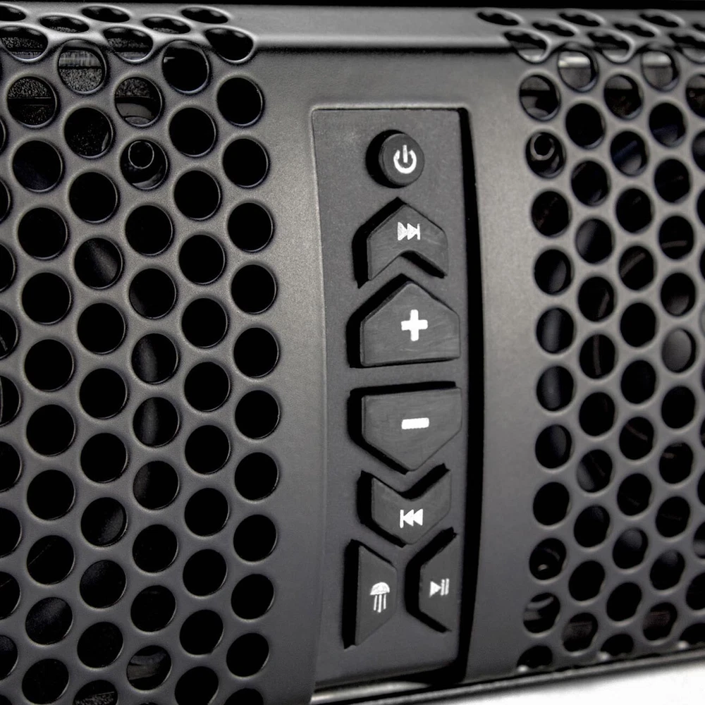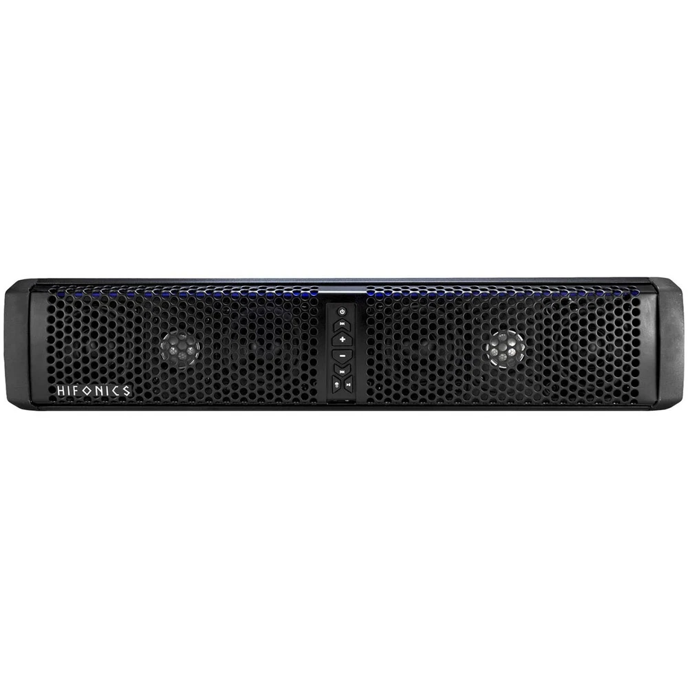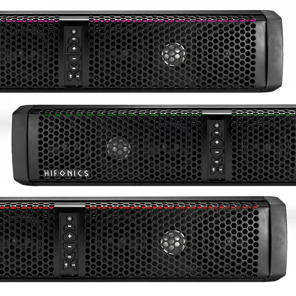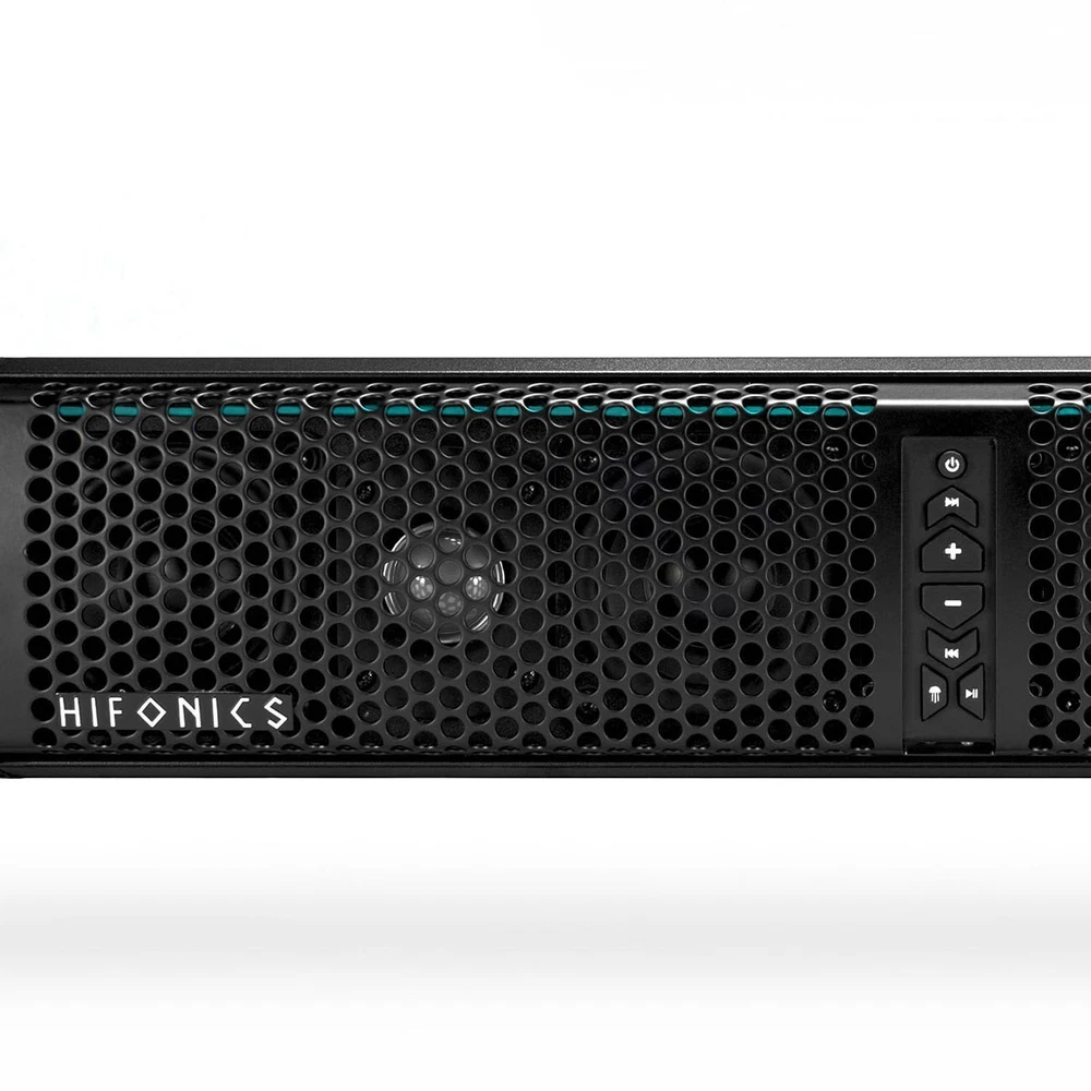 This is a Hifonics Powersports THOR 6 Speaker Bluetooth 200 Watts Waterproof Soundbar With Multi Color LED Illumination (Catalog#HW/HSFB6 ) !!! Free Domestic Shipping Within The USA !!! The item features: Made by Hifonics Ideal for Marine or Powersports applications Color: Black Waterproof Rating: IPX68 All-in-One Bluetooth Standards: CSR BT4.0 chipset, Version 4.0 All-in-One Amplifier Power (watts): 200 All-in-One Bluetooth Range (ft): 32 All-in-One Pre-amp Input: 3.5 Auxiliary Jack, Standard Voltage All-in-One Pre-amp Output: 2.0V Fixed, RCA Jacks AMPLIFIER STANDARD: RoHs, SUPER HPD: High Power Digital Amplifier, SPEAKER IMPEDANCE: 4 Ohm, AUDIO OUTPUT CROSSOVER POINT: Non Adjustable Full Range Output, MINIMUM OPERATING VOLTAGE: 9.5V Secure Simple Pairing™: Secure Simple Pairing keeps your BT connected and no one else. Audio Connections: 3.5mm: Plug in a device from a headphone output into the Thor soundbar without connecting to Bluetooth. AUX Inputs: Audio input to allow direct plug-in from music player. Bluetooth “Memory Sync” remembers the most recent device when that device is present on “power up”. Large Center Mounted Controls: Easily control Power on/off, Track forward/back, Map light on/off, Bluetooth Connect. Large Waterproof Buttons: Easy to operate controls with riding gloves on. Mounting: Cast Aluminum: Full Strength, no plastic part for maximum support. Roll Cage Surface Mount: Sliding Track will accommodate 1.5, 1.75 and 2 inch roll cage pipes. Surface Mounting Brackets. Compatible Vehicle Fitment: Sound Bars will integrate perfectly into SXS, ORV’s or custom Sand Cars. Marine Grade Protection / IPX Rating: Waterproof and Dustproof with IPX68 Certification. Integrated Amplifier: Built-in, SUPER HPD: Hifonics unique SUPER HPD (High Power Digital) amplifier is designed specifically for powersports applications to deliver 30% more SPL over standard amplifier technology. Four 3 inch High Energy: Specialized High Efficiency Drivers with poly composite cones and Butyl rubber surrounds that produce more volume over standard automotive and car audio speakers. Two 1 inch Titanium Dome: Pure Titanium dome tweeters with Neodymium magnets for increased SPL Enclosure / Structure: Cast/Extruded: The entire Thor sound bar is built for delivering power and longevity. There are cast and extruded components to add strength. All the wiring connections are sealed and mounting points are secured into the aluminum. NO plastic parts. Heavy Duty Aluminum Grill: Protects internal drivers against accidental impact. Secure Simple Pairing™: Secure Simple Pairing keeps your BT connected and no one else. Audio Connections: 3.5mm: Plug in a device from a headphone output into the Thor soundbar without connecting to Bluetooth. AUX Inputs: Audio input to allow direct plug-in from music player. Wireless Connections: Bluetooth “Memory Sync” remembers the most recent device when that device is present on “power up”. Controls: Large Center Mounted Controls: Easily control Power on/off, Track forward/back, Map light on/off, Bluetooth Connect. Large Waterproof Buttons: Easy to operate controls with riding gloves on. Mounting: Cast Aluminum: Full Strength, no plastic part for maximum support. Roll Cage Surface Mount: Sliding Track will accommodate 1.5, 1.75 and 2 inch roll cage pipes. Surface Mounting Brackets. Illumination: Switchable colors or modes. Mode 1: All Colors Slow Change, Mode 2: All Colors Blink Change, Mode 3: Illumination Off, Colors: Blue – Purple – Red – Pink – Green – Light Green – Light Blue – Yellow – White LINE DRIVER: Audio Output – Drive Multiple Units. (L x D x H): 21.02” x 4.92” x 4.33” Weight 12.9 lbs