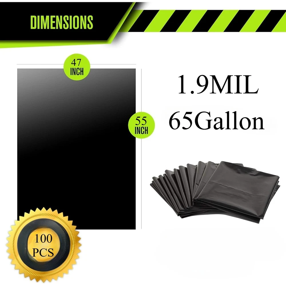 High Capacity Heavy Duty Garbage Bags 65 Gallon Industrial Strength Leak Proof