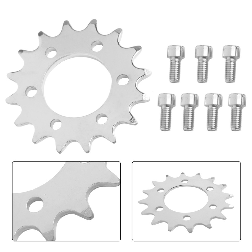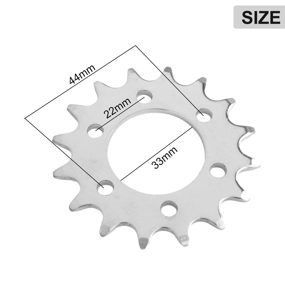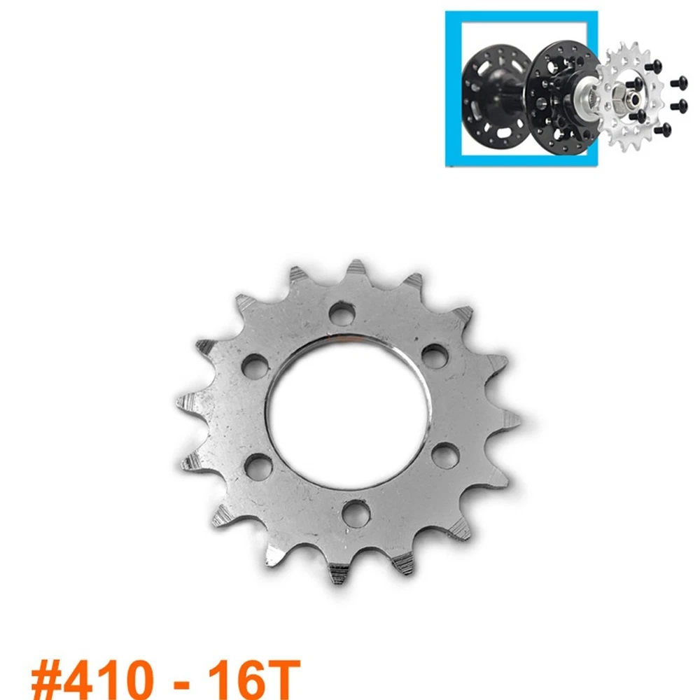 High Efficiency 16T Fixed Gear 16 Teeth Sprocket Electric Bike Accessory DESCRIPTION Feature: For bicycles with 44mm brake disc mount Electric bike motorcycle accessories For 410 chain 16 teeth brake disc sprocket gear Specification: Product Name: 16 teeth bolt-on sprocket. Color: Silver Size: 16T Chain: For 1/2"for X1/8" chain(normal bicycle chain) Material: Steel Package Content : 1 * 16 teeth bolt-on sprocket. Note: 1. The real color of the item may be slightly different from the pictures shown on website caused by many factors such as brightness of your monitor and light brightness. 2. Please allow slight manual measurement deviation for the data. POLICES Shipping Payment WARRANTY We only ship to confirmed ebay Order addresses. Please comfirm that your Order address is in line with your shipping address. Please kindly note that the c ombined shipping is not provided because the shipping fee is calculated by weight. Also, the each additional item means exactly the the same color and size. It takes about 7 -15 working days to US; about 10-30 working days to other countries. Transit time may be a little delayed because of the bad weather and customs inspection . If you do not receive your item within 30 working days since payment finished, please contact us immediately for further assistance. Payment must be completed within 5 days. If you have any problems about payment, please contact us via ebay message. We strive for 100% customer satisfaction! Positive Feedback is very important to us. If you have any questions, p lease feel free to contact us via "Ask seller a question" . We will reply your email within 24 working hours.