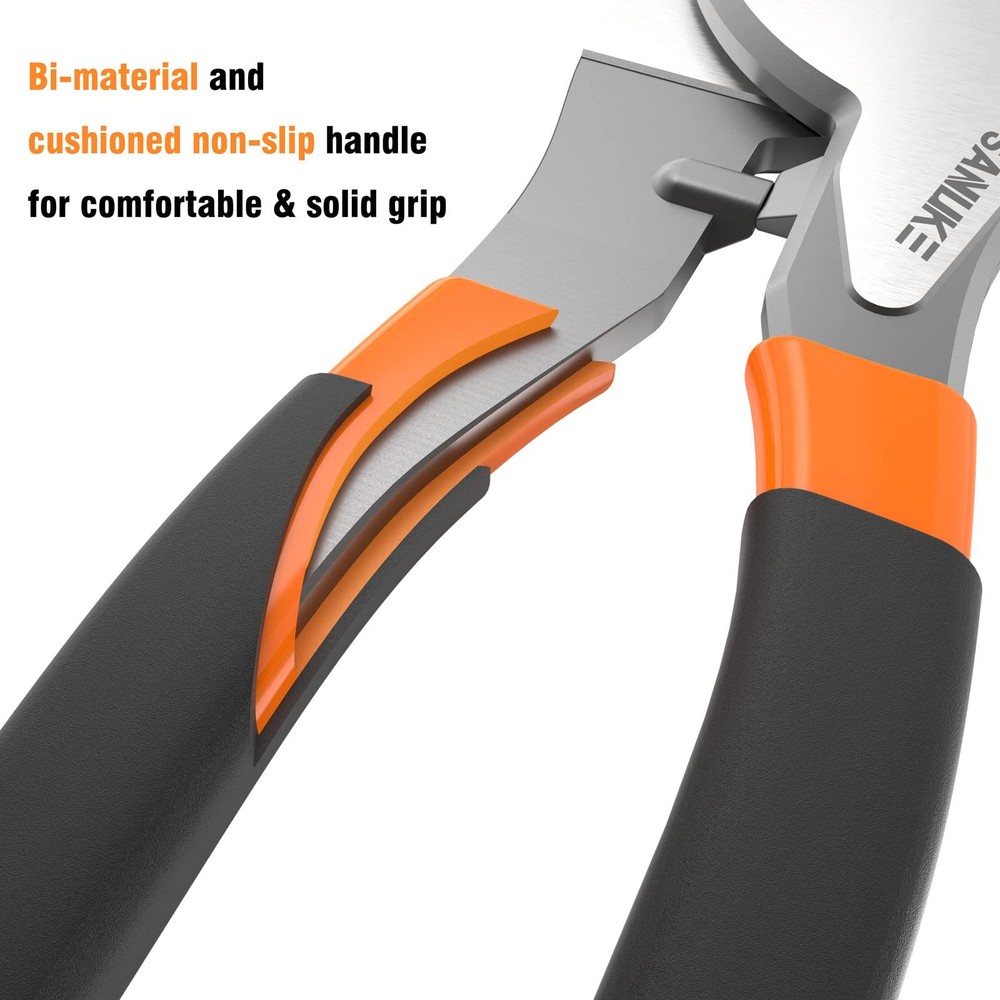 high grade cable scissors series: Widely used for aluminum, copper, communications cable. Constructed of high-carbon steel for superior performance. High-leverage design conforms to ergonomics. Laser heat-treated cutting edges last longer. One-hand operation suitable for narrow confined space. Laser heat-treated cutting edges design makes it have a longer service life. Package include: 1 x Cable cutter Specification: Size: 10 inch Length : 24cm / 9inch Thickness : 1.4cm/ 0.55inch Handle Span : 5cm / 9inch Material: High-carbon steel Cutting Range : <7cm/ 2.8inch Weight: 1.19 pounds 【Battery Cable Cutters】10 Inch cable cutter features cable-gripping shear-type jaws. Knife and anvil style cutting edge to ensure perfect mating and superior cutting edge life. Laser heat-treated cutting edges last longer. 【High Leverage Cable Cutter】High-leverage design makes the wire cutters have long handle. Compared with other tools in the market, the labor-saving design conforms to ergonomics, helps to save most effort, effectively prevents hand fatigue, which also makes the work easier. 【High-quality Cable Cutters】Wire cutters heavy duty is constructed of high-carbon steel for superior performance. It has excellent anti-rust and corrosion resistance, long service life. 【Cable Cutter Pliers】Accurate cutting, easy to use even with one hand, it is very suitable for working in narrow confined space. The handle of wire cutters electrical is comfortable and easy to spot in your tool bag. 【Widely Used】This high leverage cable cutters heavy duty has a wide range of applications, which can cuts for aluminum, copper, communications cable and so on. Not for steel, steel wire, live wire and aluminium of ACSR.