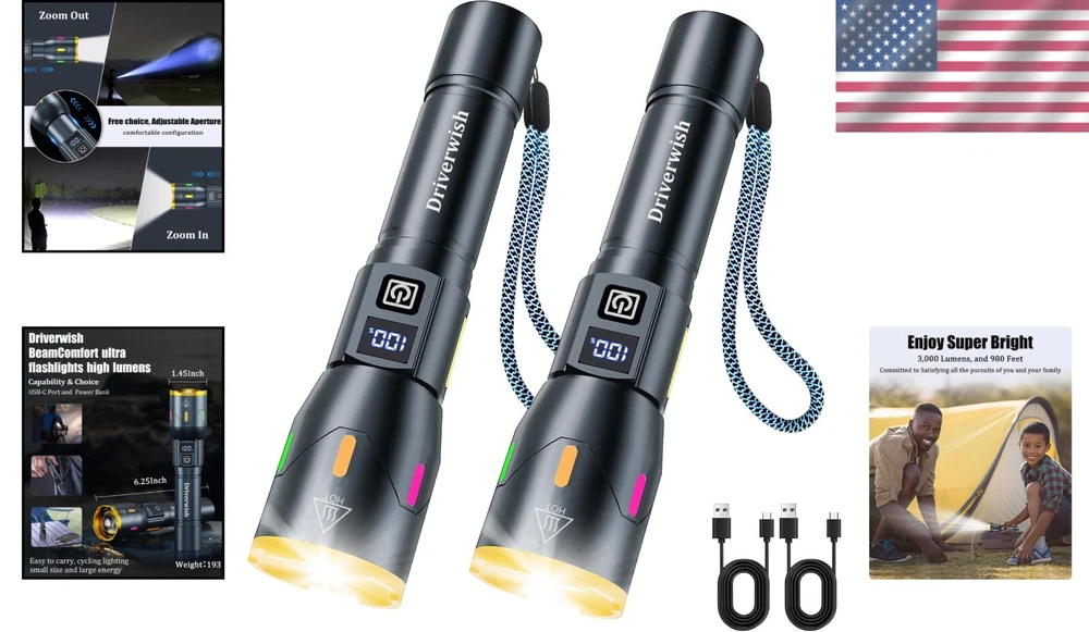 High Lumens Rechargeable Flashlight Set - 3000 Lumens with Multi-Color Strip ‹ › ‹ › ‹ › ‹ › ‹ › ‹ › ‹ › ‹ › ‹ › High Lumens Rechargeable Flashlight Set - 3000 Lumens with Multi-Color Strip Illuminate Every Adventure Super Bright: The rechargeable flashlight delivers an astonishing 3,000 lumens, illuminating your path up to 980 feet. With a remarkable lifespan of 60,000 hours, this durable flashlight is designed to withstand extreme weather conditions - be it rain, sunlight, or freezing temperatures. The perfect companion for any outdoor enthusiast. Versatile Lighting Modes 3 Model & Zoomable: Choose from high, medium, or strobe lighting modes tailored to your needs. The flashlight offers convenient adjustment from clear to far light, ensuring visibility during emergencies and adventures alike. Multi-Color Night Light Feature Distinctive Color Strip: The cleverly designed lamp head features a multi-color light strip, allowing you to easily find your flashlight in the dark, whether at home or in the great outdoors. Built to Endure High-Quality Aluminum Material: Crafted from high-strength synthetic aluminum alloy, this flashlight not only boasts exceptional strength but also ensures optimal thermal conductivity, making it a reliable choice for all your needs. Quality Assurance 3-Year Guarantee: When you choose the , you benefit from a 3-year quality guarantee. Should you encounter any issues, we offer hassle-free exchanges and full refunds, ensuring your complete satisfaction. The Perfect Gift Searching for an ideal gift? The LED flashlight is perfect for fathers, mothers, husbands, sons, and boyfriends alike. This versatile flashlight makes an excellent present for Christmas, Father's Day, Valentine's Day, Easter, Halloween, and Thanksgiving! Why Choose the Flashlight? Don't settle for ordinary. Equip yourself with the super bright, multi-functional flashlight, designed to enhance your adventures while ensuring safety and reliability. Add this essential outdoor tool to your shopping cart today! Shipping Free & Fast Shipping - We offer free shipping to most of the USA with a normal delivery time of 3-7 days. However, due to the current situation, additional delivery time (up to 3 weeks) may be required for some items. Alternative Carriers - We may use alternative carriers (e.g. USPS, FedEx, UPS, etc.) to ensure your package arrives safely and on time. Due to the use of multiple carriers, we are unable to provide a tracking number automatically. Handling Time - Orders are processed and shipped within 1-2 business days of receiving cleared payment. Shipping Restrictions - Shipping to Alaska, Hawaii, Puerto Rico, Guam, and other US territories may incur shipping charges or delivery restrictions. Please contact us before ordering, or your order can be refunded/cancelled. State Restrictions - There may be restrictions based on your state of purchase. For example, certain items may not be shipped to California due to state regulations. Contact for Tracking Updates - If you require tracking updates or have any concerns about the delivery of your order, please feel free to contact us, and we will be happy to assist you. Return 30-Day Hassle-Free Returns - We want you to be completely satisfied with your purchase. If you are not, you can return the item within 30 days of receiving it for a full refund or exchange. Easy Return Process - To start a return, simply contact us and we will provide you with a prepaid return shipping label and detailed instructions. Restocking Fee - There are no restocking fees for returns. However, the buyer is responsible for return shipping costs if the return is not due to a seller's error. Refund Processing Time - Refunds will be processed within 5 business days of receiving the returned item in its original condition. Payment We accept all major credit cards, PayPal, and Apple Pay for your convenience. Your payment information is secure and encrypted to ensure a safe and seamless transaction. Please complete your payment within 3 days of purchase to avoid any delays in shipping. Feedback Your feedback is extremely important to us. We strive to provide the best products and customer service possible. If you are satisfied with your purchase, please take a moment to leave us a positive review. If you have any concerns or issues with your order, please contact us before leaving negative feedback. We are committed to resolving any problems and ensuring your satisfaction. Contact Us If you have any questions or concerns, please feel free to reach out to our customer support team. You can contact us through the eBay messaging system. We are available Monday to Friday, 9:00 am to 5:00 pm EST, and we will do our best to respond to your inquiry within 24 hours. Thank you for supporting our small family business! UPC: Not Set Voltage: 3.7 volts Item Height: Rechargeable Flashlights Item Length: Rechargeable Flashlights Item Weight: 7.68 ounces Item Width: Not Set Model: Not Set Lumens: 3000 lumens Number of LEDs: 1 Unit Quantity: 2 Features: Rechargeable,Waterproof,Zoomable,High Power,Adjustable Light Modes,Long Range,Weatherproof,Adjustable Focus Material: Aluminum Brand: Unbranded Type: Flashlight Lighting Technology: LED Power Source: Battery Operating Range: 980 feet MPN: Not Set Battery Technology: Lithium-ion Number of Batteries: 1 Color: Graphite Gray Country/Region of Manufacture: Not Set IP Rating: Not water resistant Operating Time: More Than 10 Hours Number of Lights: 1-3 Unit Type: oz Personalize: Not Set