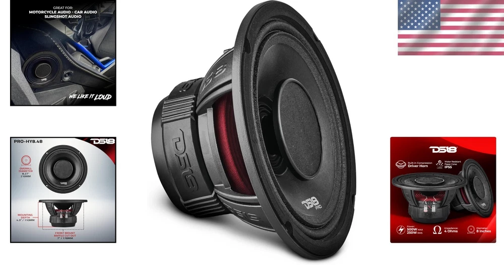 High Power 8" Car Loudspeaker with Built-in 1" Compression Driver Horn, 250W RMS ‹ › ‹ › ‹ › ‹ › ‹ › ‹ › ‹ › ‹ › ‹ › ‹ › ‹ › High Power 8" Car Loudspeaker Equipped with a built-in 1" Compression Driver Horn, this high-powered loudspeaker is designed for those who crave unparalleled sound quality and volume in their audio experience. Key Features: **Hybrid Design:** Combines a high wattage 8" midrange speaker with a powerful rear driver for a full range of outstanding frequencies. **High Volume Output:** Rated at 250W RMS and 500W max, delivering an astonishingly loud and clear audio performance. **Weather-Resistant Cone:** Specially designed to resist moisture and other elements, making it perfect for motorcycles, boats, and standard vehicles. **Innovative Engineering:** Featuring a never-stop-innovating attitude, this speaker stands out for its cutting-edge designs and technology. Specifications: Nominal Diameter: 6.5” Nominal Impedance: 4 OHMS RMS Power Handling: 225W MAX Power Handling: 450W Sensitivity (1w/1m): 96dB Frequency Response: 100Hz-20KHz Recommended Hi Pass Crossover: 120 Hz Number of Ways: 2 Why Choose This Loudspeaker? This is not just a loudspeaker; it's a promise of uncompromising sound quality, designed for true audiophiles. Whether you're cruising on your motorcycle, enjoying a day on the boat, or simply looking to upgrade your car audio system, this speaker will elevate your listening experience to new heights. The beautifully crafted glossy red aluminum basket adds an elegant touch, and its water-resistant qualities ensure durability against the elements. Immerse yourself in the exceptional audio performance that awaits you. Experience the difference with our high power loudspeaker - an essential addition to your audio arsenal. Don't just listen to your music, feel it! Shipping Free & Fast Shipping - We offer free shipping to most of the USA with a normal delivery time of 3-10 businessdays. However, due to various situations, additional delivery time (up to 3 weeks) may be required for some items. Alternative Carriers - We may use alternative carriers (e.g. USPS, FedEx, UPS, etc.) to ensure your package arrives safely and on time. Due to the use of multiple carriers, we are unable to provide a tracking number automatically. Handling Time - Orders are processed and shipped within 1-5 business days of receiving cleared payment. Shipping Restrictions - Shipping to Alaska, Hawaii, Puerto Rico, Guam, and other US territories may incur shipping charges or delivery restrictions. Please contact us before ordering, or your order can be refunded/cancelled. State Restrictions - There may be restrictions based on your state of purchase. For example, certain items may not be shipped to California due to state regulations. Contact for Tracking Updates - If you require tracking updates or have any concerns about the delivery of your order, please feel free to contact us, and we will be happy to assist you. Return Please see our ebay return policy. We do not accept return on most products. This is to avoid customers mis-using ebay returns. All sales are final. Please be sure to check the return policy listed at the top of the listing. In rare cases, we may accept returns, if the buyer pays both ways shipping and 20% restocking fee. If you are un-sure of return policy of a particular item, please ask before buying. Payment We accept all major credit cards, PayPal, and Apple Pay for your convenience. Your payment information is secure and encrypted to ensure a safe and seamless transaction. Please complete your payment within 3 days of purchase to avoid any delays in shipping. Feedback Your feedback is extremely important to us. We strive to provide the best products and customer service possible. If you are satisfied with your purchase, please take a moment to leave us a positive review. If you have any concerns or issues with your order, please contact us before leaving negative feedback. We are committed to resolving any problems and ensuring your satisfaction. Contact Us If you have any questions or concerns, please feel free to reach out to our customer support team. You can contact us through the eBay messaging system. We are available Monday to Friday, 9:00 am to 5:00 pm EST, and we will do our best to respond to your inquiry within 24 hours. Buy it now and enjoy a pleasant shopping experience! MPN: Car_Audio_Speakers UPC: Not Set Model: Not Set Brand: Unbranded Speaker Size: 8in. Type: Component Speaker System RMS Power: 250W Country/Region of Manufacture: Not Set