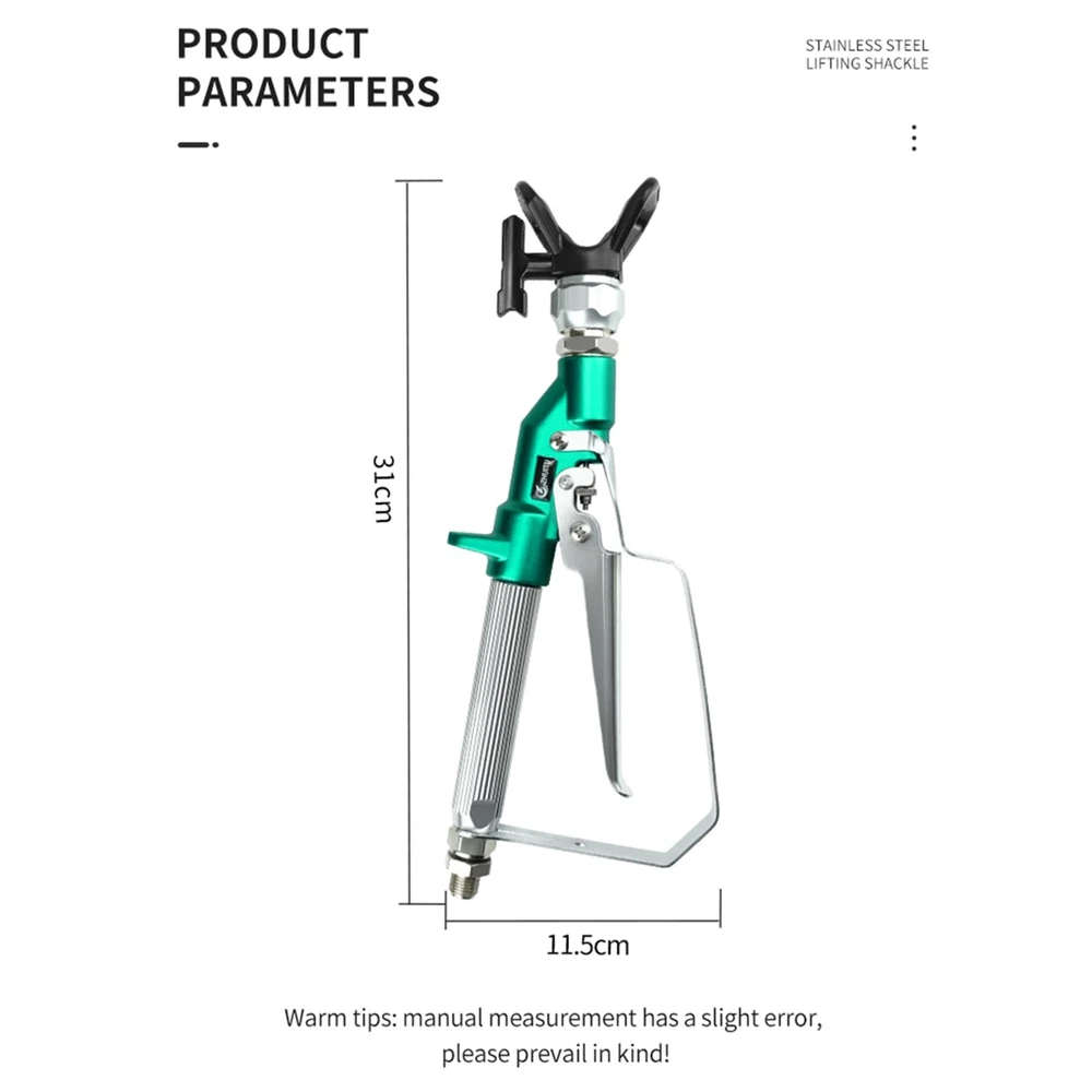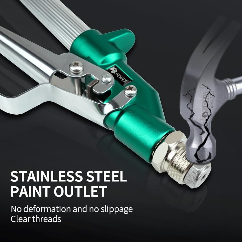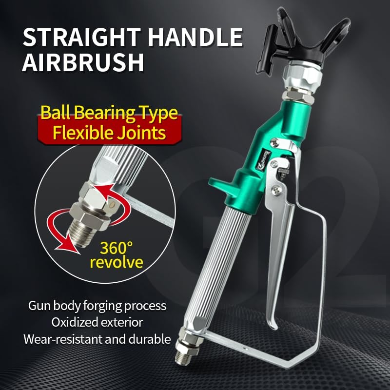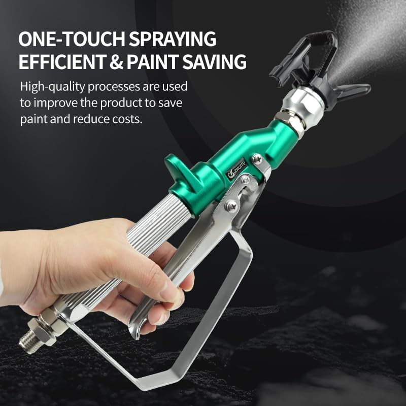Airless Paint Spray Gun 3600 PSI 517 TIP SPARY GUN WITH NOZZLE: Reversible 517 Tip, Airless Paint Spray Gun High degree atomizing paint, thumb engaged safety lock allows you to lock the handle when not spraying.Promise that the paint will not leak, will not drip, keep your clean working environment and better than the rest of the market High quality SPRAY GUN: Industrial grade XTR high pressure airless gun. Maximum operating pressure of 3600 PSI and easily cope with various working environments Cost-effective: The airless paint spray gun made of high quality aluminum alloy, strong wear resistance, with GDO gun needle imported from Germany.A variety of coatings including primers can be sprayed Flexible Partner: Strict and standardized quality control to maintain the best feel. Replaceable in-handle paint filter reduces tip clogging and improves the finish. Replaceable gun needle keeps maintenance simple Security: Airless spraying is high pressure spraying. If there's a blast, it's enough to hurt people. The airless paint spray gun for 4 level safety factor, bursting pressure is 4 times of the nominal pressure, to ensure your safety