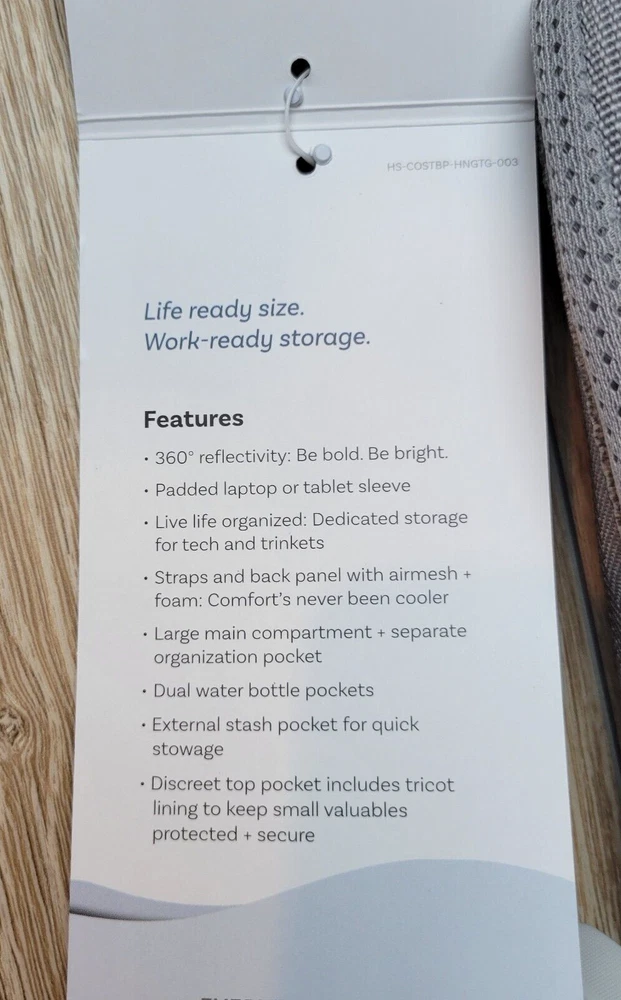- Everyday backpack with adjustable shoulder straps and mesh back panel provide comfort and breathability when carrying - Made of 600D polyester body fabric with a water-repellent coating, ensuring long-lasting use - Reflective accent feature provides added visibility when walking around at night for maximum safety - Front stash pocket with an organizer panel and key fob allows you to neatly store your small supplies - Tricot-lined exterior with a stealth pocket is ideal for stashing valuables or items you want to access quickly while on the go