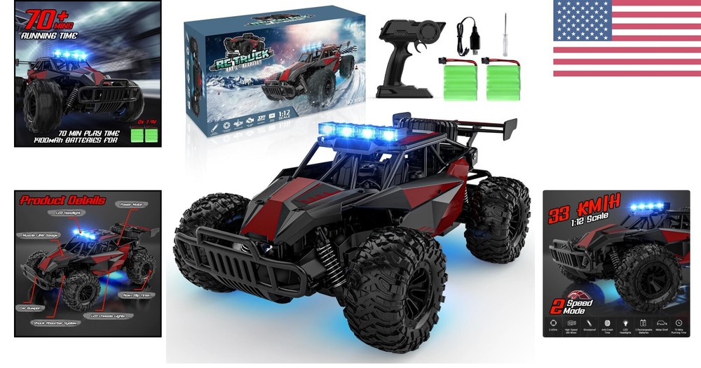 This RC car is a blast! The 33KM/H speed feels thrilling, and the 2.4GHz remote gives smooth, responsive control. The sturdy ABS and alloy body handles rough terrain like a champ, while the LED lights make night driving super fun. Perfect for kids and adults who love fast, durable off-road action!