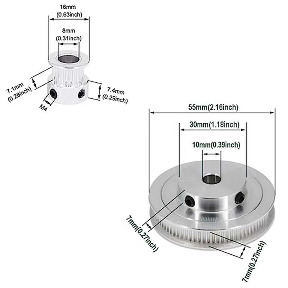 High Transmission Accuracy Aluminium Timing Pulley Set with 250mm Belt DESCRIPTION Features: *Precise transmission: Made of high quality aluminium alloy with oxidation treatment, our timing belt pulleys provide high transmission accuracy and prevent slippage during . *Frictionless transmission: With precise tooth spacing and high transmission efficiency, our timing belt pulleys provide smooth transmission and save energy. *Easy installation: Our timing belt pulleys have a simple structure and are easy to install, assemble and disassemble. * and finely crafted: Our timing belt pulleys are made of high quality aluminium alloy and offer high durability and fine workmanship. *Versatile application: Our timing belt pulleys are widely used in milling machines, gear mills, drilling machines, rolling machines or other machine transmission. Specifications: Colour: silver Material: aluminium alloy Number of teeth: 20&80 Transmission ratio: 1:4 Installation aperture: Φ8mm/Φ10mm Belt length: 250mm Belt width:6mm Package Included: 2*Synchronous Wheel 1* Belt 2*Wrench Note: 1. The real color of the item may be slightly different from the pictures shown on website caused by many factors such as brightness of your monitor and light brightness. 2. Please allow slight manual measurement deviation for the data. POLICES Shipping Payment WARRANTY We only ship to confirmed ebay Order addresses. Please comfirm that your Order address is in line with your shipping address. Please kindly note that the c ombined shipping is not provided because the shipping fee is calculated by weight. Also, the each additional item means exactly the the same color and size. It takes about 7 -15 working days to US; about 10-30 working days to other countries. Transit time may be a little delayed because of the bad weather and customs inspection . If you do not receive your item within 30 working days since payment finished, please contact us immediately for further assistance. Payment must be completed within 5 days. If you have any problems about payment, please contact us via ebay message. We strive for 100% customer satisfaction! Positive Feedback is very important to us. If you have any questions, p lease feel free to contact us via "Ask seller a question" . We will reply your email within 24 working hours. On Jan 2, 2025 at 07:43:42 PST, seller added the following information: