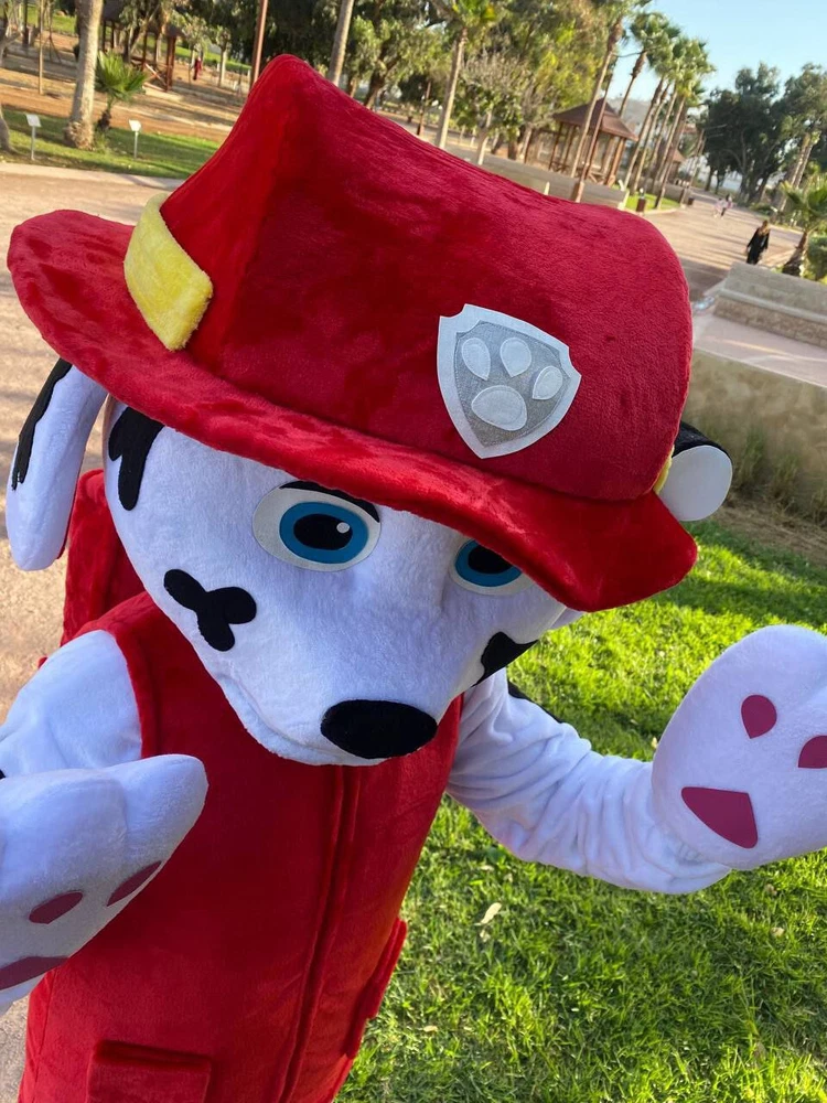 Unleash the playful spirit at your next event with the high-quality Mascot Costume MARSHALL, an ideal choice for parties, Halloween, or birthdays. Crafted with care, this complete outfit is a one-size-fits-all treasure, ensuring a comfortable fit for all. The costume features a classic white color, enhancing the charismatic appeal of this charming character. Constructed from a soft cotton blend and thoughtfully padded for added comfort and durability, this handmade costume promises to bring a touch of whimsy to any occasion. The costume hails from the rich cultural heritage of Morocco, melding traditional craftsmanship with festive celebration. Embrace the fun and let MARSHALL lead the way to a night of memorable moments. Free shipping and delivery Cartoon Dog Patrol Mascot Costume Very excellent quality