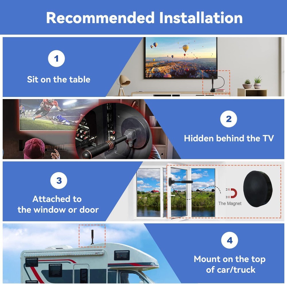 Contact Us Add to Favorite Welcome to GM IMPORTS Contact Us Fast Shipping Hassle Free Return eBay Money Back Guarantee Authenticity Guarantee Digital Outdoor Indoor TV Antenna With Magnetic Base And 16.5 Feet Long Cable For TV Tuner-35 Mile VHF UHF Long Range Features Enjoy Local HD channels - Never pay expensive cable or satellite fees again! With EleMinikin TV Antenna for Digital Indoor TV, enjoy local news, weather, sitcoms, kids and sports programming without monthly contract Easy Install in less than 3 minutes- Just plug the antenna into the back of TV port ANT IN or digital converter box(HDTV receiver),set your TV to antenna mode and scan for channels Magnetic Base - Make it more stronger; the magnetic base together with 16.5ft Coax Cable allows it to be located a strong signal spot 4K HDTV reception ensures crystal clear HD TV shows, 360 design pulls in signal from all directions Don't let the size discourage you! It's tiny but powerful; It doesn't take up a lot of space,perfect to blend in with its surroundings and to hide behind TV. 16.5feet Long Cable makes it more flexible to position for best signal reception. Item Description Product Dimensions: 3.5 x 1 x 3.8 inches Item Weight: 6.4 ounces Antenna: Television, Satellite Color: black Impedance: 50 Ohm Maximum Range: 56000 Meters Item Dimensions LxWxH: 3.5 x 1 x 3.8 inches Item Reviews 5.0 out of 5 stars Anntena 18 Sep 23 It works perfect for me . It scan all my local and another 50 + channels. I recommend it works and the price is right... 5.0 out of 5 stars Works! 15 May 23 It was a gift and I'm told it works fine. No issues yet. 4.0 out of 5 stars Decent antenna 14 Jan 23 Sometimes, I have to move it around, but I do get some channels with it 5.0 out of 5 stars Great improvement 1 Jan 23 This was a gift for a friend who was using one of those flat antennas (with a signal booster) but wasn't getting many channels and several often broke up. We hooked this up Christmas Eve, did a little shifting around and channel scanning. She now has 30 channels to watch that come in crystal clear, including some channels she had been wanting but could never get. She is extremely happy with this antenna. 5.0 out of 5 stars 7" TV reception excellent 2 Oct 22 I use the antenna for a 7" portable TV. Because the cable length is 16.5 feet, I have very good TV reception from nearby TV stations about 10 to 13 miles away. Cable lengths of 16 feet are difficult to find. I may want to buy a spare antenna. Antenna cable lengths of 8 or 10 feet have poor or no TV reception. 5.0 out of 5 stars Great powerful antenna 24 Jul 22 We cut the cord over 12 yrs ago and have tried different antenna..well this one is heavy duty with a strong magnet, I get over 93 channels free. Highly recommend 5.0 out of 5 stars Working well 3 Mar 22 HD forSure it takes every free channel the price i could find 5.0 out of 5 stars Very Good 12 Jan 22 I never leave reviews but I am so surprised. This antenna works better than the $40 ones that have the amplifiers. I get like 60 channels. Excellent buy. About us Customer service is our top priority! Please be sure to read the description thoroughly to make sure that this is the item you want before making a purchasing decision. If you have any questions about this item, please contact us via eBay messages before placing your order. We make every effort possible to accurately describe and depict the items. Please be aware that slight variations in color may be due to differences in lighting and computer monitor resolutions. All items are in stock at the time of listing; however, in the unlikely and unforeseen event that we are unable to fulfill your order through any of our networked warehouses, we will notify you as quickly as possible and offer you a 100% refund on your purchase. Thank you for shopping with us. We appreciate your business! Payment PayPal is our preferred method of payment. If you do not have a PayPal account, all major credit cards are gladly accepted through PayPal as the payment processor. PayPal offers great buyer and seller protection. Your order will be processed pending receipt of cleared payment through PayPal. Sales tax may be charged depending on your location. Shipping We provide fast, free shipping. Most items are shipped within 3-5 business days of receiving cleared payment. We ship to the lower 48 contiguous United States only. We do not ship to P.O. Boxes or APOs. For select items, we ship internationally through eBays Global Shipping Program. We do ship most of our smaller items internationally using eBays Global Shipping Program. If ordering electrical items outside of the U.S., please note that they will come equipped with a standard U.S. voltage plugs. You will need a suitable adapter to use the item in your country. Certain restrictions apply. Standard or Economy Shipping is ALWAYS FREE! You will be notified via eBay messages as soon as your items ship. Special Notice for Freight Items: If an item ships via Freight (Truck) Delivery, a valid phone number will be required so that we can contact you to schedule delivery. The item may be delivered with curbside delivery. An adult signature will be required. Please be sure to have available help on hand to assist you with moving the item to the desired location in or outside of your home. Freight items must be inspected upon delivery. In the unlikely event that damaged is observed, you MUST refuse delivery and note the damage on the shipping receipt and send it back via the Freight carrier. Returns will not be accepted on Freight items after they have been delivered, inspected, and the driver has left the premises. Returns We offer a 30 day return/exchange policy for most of our products. You can request a refund if you are dissatisfied for any reason with your product. (Restocking Fee May Apply). Only factory defects are accepted as a reason for a return. In the case of factory defects, if available, we will replace the product for you. When returni