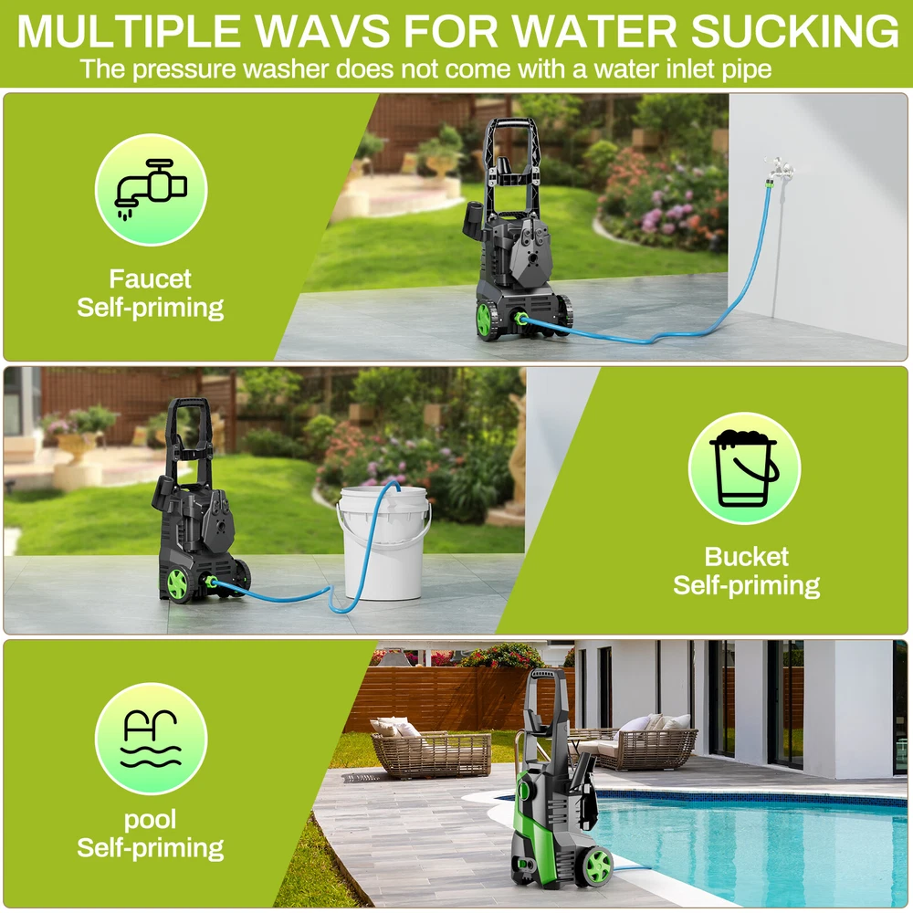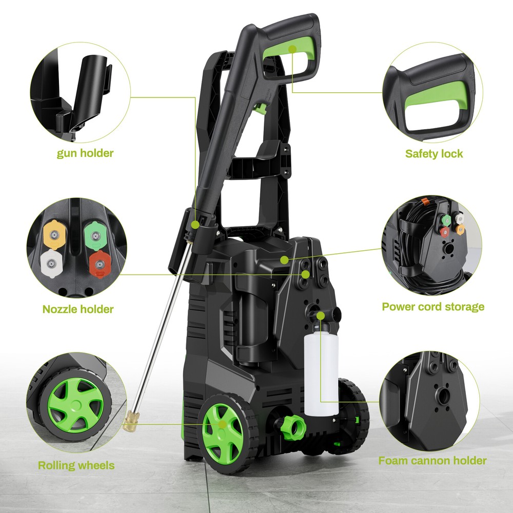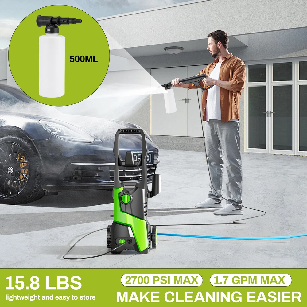 Description: Yiwsz-0 Your Best Online Business Partner Electric Pressure Washer, Power Cleaning Machine W/Anti-Tipping Technology, 4-Nozzle Set, Foam Cannon, Outlet Hose, 2700 PSI Max, 1.7 GPM Max, for Cars, Fence, Window, Patio, Home, Bicycle Description: DURABLE PRESSURE WASHER: Electric pressure washer boasts a maximum water pressure of 2700 PSI and a flow rate of 1.7 GPM, tackling stubborn stains and tough dirt easily. Equipped with a copper core motor, power washer consistent power and reliability, ensuring a long service life LARGE AREA CLEANING: Portable power washer comes with a 16FT power cord and a 23FT high-pressure water hose. Roller design for easy movement. There are many ways to get water, including taps, buckets, and swimming pools, breaking through environmental restrictions FOUR NOZZLES WITH DIFFERENT PRESSURES: High pressure cleaner has 4 nozzles (water pressure strength: 0°>15°>25°>40°) and a 500 ML foam cannon, suitable for different cleaning scenarios. Foam tank can be used to clean cars and bicycles ANTI-TILT DESIGN FOR EASY STORAGE: Bottom of high pressure washer has an anti-tilt design, it can be placed stably on the ground. High pressure washer dimensions: 12in×11in×17.8in, weight 16LBS, compact design for easy storage SAFETY FEATURES: High pressure cleaning machine has leakage protection device and overheat protection. Trigger has a safety buckle, automatically shuts off pump and power when trigger is not engaged. High pressure water hose is IPX5, with safety performance Specification: Length: 8in Width: 8.7in Height: 26.4in Weight: 16 LBS Water Pressure: 2700 MAX PSI Water Flow: 17 MAX GPM Power: 1800W Safety features: Prevent overheating Leakage protection device Handle safety buckle TSS (Total Stop System): automatically shuts off the pump and power when the trigger is not engaged to save energy and prolong pump life Waterproof: High pressure water hose has IPX5 protection Notes: 1. Do not use on people or animals 2. For safe use, please clean the device every three months. Before use, please check the filter and nozzle to ensure there are no impurities. After use, please make sure there is no water in the pump and hose. Item Specifics Type Electric Pressure Washer Brand Unbranded Power Source Corded Electric Maximum Pressure 2700 psi Features Anti-Tipping Color Green Country/Region of Manufacture China Item Height 26.4 in Item Length 8 in Item Width 8.7 in Item Weight 16 LBS Payment We only accept Payoneer payment. Shipping We will ship out your item within 24-48 business hours after payment received; We don't process orders on weekends and holidays. Returns 30 day returns. Full / Partial Money Back, or Replacement. Contact Us If you have ANY problems, please feel free to let us know, we'll get back to you ASAP and do our bets to resolve it. Yiwsz-0 Your Best Online Business Partner DESCRIPTION PAYMENT SHIPPING RETURN POLICY CONTACT US Store Category Store Home Kids Slide Garbage Can Indoor Furniture Fitness Home & Garden Hot Item Electric Pressure Washer High Power Cleaner with Hose & 4 Nozzles for Car, Patio USD 89.99 Electric Pressure Washer with Hose & 4 Nozzles High Power Cleaner for Car, Patio USD 69.99 Electric Pressure Washer High Pressure Cleaner W/ Telescopic Handle & 4 Nozzles USD 69.99 Electric Pressure Washer W/ Telescopic Handle High Pressure Cleaner for Cars USD 69.99 New List Item 900LBS 6-in-1 Weight Bench Set W/ Squat Rack Adjustable Incline Bench Press Set USD 189.99 16 Gal Dual Trash Can Kitchen Garbage Bin Recycle Waste Dustbin w/ 2 Buckets USD 129.99 5-Piece Outdoor Dining Set, Patio Table and 4 Chairs for Backyard & Gardens USD 139.99 7 Piece Outdoor Patio Dining Set, Patio Table and Chairs furniture for Backyard USD 259.99 8 Gallon Stainless Steel Dual Trash Can Dual Compartment Step On Garbage Bin USD 79.99 Help & Info Payment Policy Shipping Policy Return Policy FAQ About Us Electric Pressure Washer, Power Cleaning Machine W/Anti-Tipping Technology, 4-Nozzle Set, Foam Cannon, Outlet Hose, 2700 PSI Max, 1.7 GPM Max, for Cars, Fence, Window, Patio, Home, Bicycle Description: DURABLE PRESSURE WASHER: Electric pressure washer boasts a maximum water pressure of 2700 PSI and a flow rate of 1.7 GPM, tackling stubborn stains and tough dirt easily. Equipped with a copper core motor, power washer consistent power and reliability, ensuring a long service life LARGE AREA CLEANING: Portable power washer comes with a 16FT power cord and a 23FT high-pressure water hose. Roller design for easy movement. There are many ways to get water, including taps, buckets, and swimming pools, breaking through environmental restrictions FOUR NOZZLES WITH DIFFERENT PRESSURES: High pressure cleaner has 4 nozzles (water pressure strength: 0°>15°>25°>40°) and a 500 ML foam cannon, suitable for different cleaning scenarios. Foam tank can be used to clean cars and bicycles ANTI-TILT DESIGN FOR EASY STORAGE: Bottom of high pressure washer has an anti-tilt design, it can be placed stably on the ground. High pressure washer dimensions: 12in×11in×17.8in, weight 16LBS, compact design for easy storage SAFETY FEATURES: High pressure cleaning machine has leakage protection device and overheat protection. Trigger has a safety buckle, automatically shuts off pump and power when trigger is not engaged. High pressure water hose is IPX5, with safety performance Specification: Length: 8in Width: 8.7in Height: 26.4in Weight: 16 LBS Water Pressure: 2700 MAX PSI Water Flow: 17 MAX GPM Power: 1800W Safety features: Prevent overheating Leakage protection device Handle safety buckle TSS (Total Stop System): automatically shuts off the pump and power when the trigger is not engaged to save energy and prolong pump life Waterproof: High pressure water hose has IPX5 protection Notes: 1. Do not use on people or animals 2. For safe use, please clean the device every three months. Before use, please check the filter and nozzle to ensure there are no impurities. After use, please m