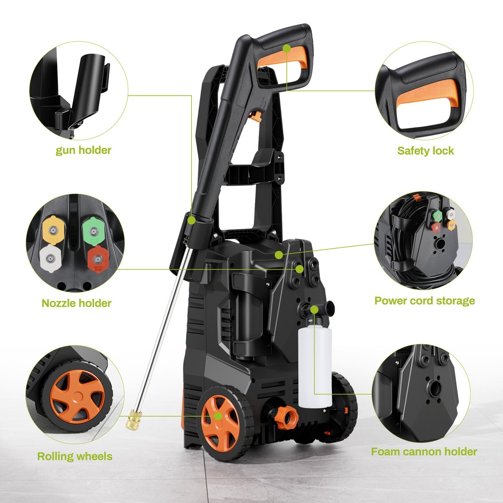 Description: Yiwsz-0 Your Best Online Business Partner Electric Pressure Washer, Power Cleaning Machine W/Anti-Tipping Technology, 4-Nozzle Set, Foam Cannon, Outlet Hose, 2700 PSI Max, 1.7 GPM Max, for Cars, Fence, Window, Patio, Home, Bicycle Description: DURABLE PRESSURE WASHER: Electric pressure washer boasts a maximum water pressure of 2700 PSI and a flow rate of 1.7 GPM, tackling stubborn stains and tough dirt easily. Equipped with a copper core motor, power washer consistent power and reliability, ensuring a long service life LARGE AREA CLEANING: Portable power washer comes with a 16FT power cord and a 23FT high-pressure water hose. Roller design for easy movement. There are many ways to get water, including taps, buckets, and swimming pools, breaking through environmental restrictions FOUR NOZZLES WITH DIFFERENT PRESSURES: High pressure cleaner has 4 nozzles (water pressure strength: 0°>15°>25°>40°) and a 500 ML foam cannon, suitable for different cleaning scenarios. Foam tank can be used to clean cars and bicycles ANTI-TILT DESIGN FOR EASY STORAGE: Bottom of high pressure washer has an anti-tilt design, it can be placed stably on the ground. High pressure washer dimensions: 12in×11in×17.8in, weight 16LBS, compact design for easy storage SAFETY FEATURES: High pressure cleaning machine has leakage protection device and overheat protection. Trigger has a safety buckle, automatically shuts off pump and power when trigger is not engaged. High pressure water hose is IPX5, with safety performance Specification: Length: 8in Width: 8.7in Height: 26.4in Weight: 16 LBS Water Pressure: 2700 MAX PSI Water Flow: 17 MAX GPM Power: 1800W Safety features: Prevent overheating Leakage protection device Handle safety buckle TSS (Total Stop System): automatically shuts off the pump and power when the trigger is not engaged to save energy and prolong pump life Waterproof: High pressure water hose has IPX5 protection Notes: 1. Do not use on people or animals 2. For safe use, please clean the device every three months. Before use, please check the filter and nozzle to ensure there are no impurities. After use, please make sure there is no water in the pump and hose. Item Specifics Type Electric Pressure Washer Brand Unbranded Power Source Corded Electric Maximum Pressure 2700 psi Features Anti-Tipping Color Green Country/Region of Manufacture China Item Height 26.4 in Item Length 8 in Item Width 8.7 in Item Weight 16 LBS Payment We only accept Payoneer payment. Shipping We will ship out your item within 24-48 business hours after payment received; We don't process orders on weekends and holidays. Returns 30 day returns. Full / Partial Money Back, or Replacement. Contact Us If you have ANY problems, please feel free to let us know, we'll get back to you ASAP and do our bets to resolve it. Yiwsz-0 Your Best Online Business Partner DESCRIPTION PAYMENT SHIPPING RETURN POLICY CONTACT US Store Category Store Home Kids Slide Garbage Can Indoor Furniture Fitness Home & Garden Hot Item Electric Pressure Washer with Hose & 4 Nozzles High Power Cleaner for Car, Patio USD 69.99 Electric Pressure Washer High Pressure Cleaner W/ Telescopic Handle & 4 Nozzles USD 89.99 Electric Pressure Washer W/ Telescopic Handle High Pressure Cleaner for Cars USD 89.99 Electric Pressure Washer High Power Cleaner with Hose & 4 Nozzles for Car, Patio USD 69.99 New List Item 3in1 Activity Craft Table & Chairs Set Kid Wooden Drawing Table Set W/ Art Easel USD 159.99 Wagon Folding Cart Collapsible Garden Beach Utility Outdoor Camping Sports Black USD 39.99 Heavy-Duty Steel Hammock Stand for 2-3 People 550LBS Capacity for Indoor Outdoor USD 119.99 Inflatable Bounce Houses for Kids with Splash Pool & Water Gun & Basketball USD 319.99 Collapsible Wagon Cart Portable Utility Wagon Camping, Beach Cart w/ 360° Wheels USD 39.99 Help & Info Payment Policy Shipping Policy Return Policy FAQ About Us Electric Pressure Washer, Power Cleaning Machine W/Anti-Tipping Technology, 4-Nozzle Set, Foam Cannon, Outlet Hose, 2700 PSI Max, 1.7 GPM Max, for Cars, Fence, Window, Patio, Home, Bicycle Description: DURABLE PRESSURE WASHER: Electric pressure washer boasts a maximum water pressure of 2700 PSI and a flow rate of 1.7 GPM, tackling stubborn stains and tough dirt easily. Equipped with a copper core motor, power washer consistent power and reliability, ensuring a long service life LARGE AREA CLEANING: Portable power washer comes with a 16FT power cord and a 23FT high-pressure water hose. Roller design for easy movement. There are many ways to get water, including taps, buckets, and swimming pools, breaking through environmental restrictions FOUR NOZZLES WITH DIFFERENT PRESSURES: High pressure cleaner has 4 nozzles (water pressure strength: 0°>15°>25°>40°) and a 500 ML foam cannon, suitable for different cleaning scenarios. Foam tank can be used to clean cars and bicycles ANTI-TILT DESIGN FOR EASY STORAGE: Bottom of high pressure washer has an anti-tilt design, it can be placed stably on the ground. High pressure washer dimensions: 12in×11in×17.8in, weight 16LBS, compact design for easy storage SAFETY FEATURES: High pressure cleaning machine has leakage protection device and overheat protection. Trigger has a safety buckle, automatically shuts off pump and power when trigger is not engaged. High pressure water hose is IPX5, with safety performance Specification: Length: 8in Width: 8.7in Height: 26.4in Weight: 16 LBS Water Pressure: 2700 MAX PSI Water Flow: 17 MAX GPM Power: 1800W Safety features: Prevent overheating Leakage protection device Handle safety buckle TSS (Total Stop System): automatically shuts off the pump and power when the trigger is not engaged to save energy and prolong pump life Waterproof: High pressure water hose has IPX5 protection Notes: 1. Do not use on people or animals 2. For safe use, please clean the device every three months. Before use, please check the filter and nozzle to ensure there are no impurities. After use