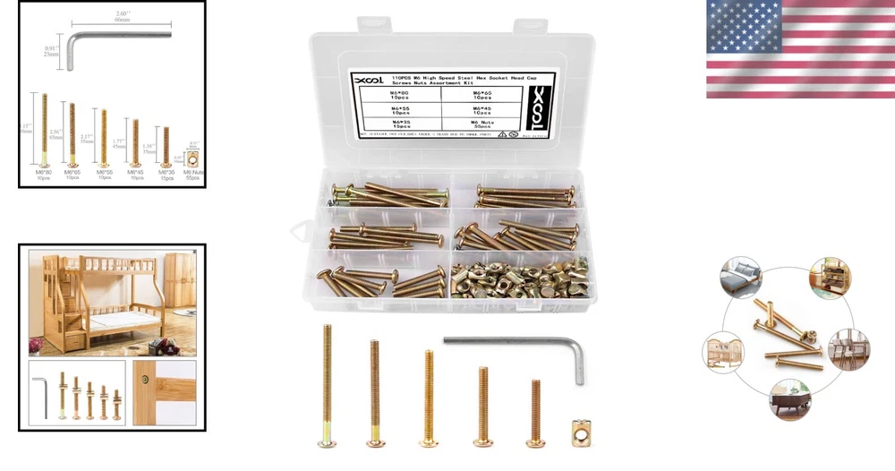 High-Quality M6 Zinc-Plated Socket Head Cap Screw Set - DIY Furniture Kit ‹ › ‹ › ‹ › ‹ › ‹ › ‹ › ‹ › ‹ › ‹ › High-Quality M6 Zinc-Plated Socket Head Cap Screw Set - DIY Furniture Kit Features: Versatile Applications: Suitable for crib bolts, bunk beds, bookshelves, chairs, and coffee tables. Assorted Sizes: Includes 80/65/55/45mm ×10 pcs and 35mm ×15 pcs for various projects. Steel Material: Crafted from high-quality steel with zinc plated surface for strength and durability. Easy Installation: Standardized thread pitch and well-defined head for hassle-free installation. Convenient Portability: Neatly organized in a plastic box for easy storage and transport. Benefits: Reliable performance for all types of furniture projects. Long-lasting durability, even in humid or outdoor environments. Easy to use for both professionals and DIY enthusiasts. Portable storage solution for organized and readily available screws. Why choose our M6 Zinc-Plated Socket Head Cap Screw Set? When it comes to your furniture projects, you need reliable and durable screws that can withstand any environment. Our M6 Zinc-Plated Socket Head Cap Screw Set is crafted from high-quality steel with a zinc plated surface, ensuring long-lasting performance. With assorted sizes and easy installation, these screws are perfect for professionals and DIY enthusiasts alike. Don't settle for inferior screws - choose our M6 Zinc-Plated Socket Head Cap Screw Set for all your furniture needs! Shipping Free & Fast Shipping - We offer free shipping to most of the USA with a normal delivery time of 3-7 days. However, due to the current situation, additional delivery time (up to 3 weeks) may be required for some items. Alternative Carriers - We may use alternative carriers (e.g. USPS, FedEx, UPS, etc.) to ensure your package arrives safely and on time. Due to the use of multiple carriers, we are unable to provide a tracking number automatically. Handling Time - Orders are processed and shipped within 1-2 business days of receiving cleared payment. Shipping Restrictions - Shipping to Alaska, Hawaii, Puerto Rico, Guam, and other US territories may incur shipping charges or delivery restrictions. Please contact us before ordering, or your order can be refunded/cancelled. State Restrictions - There may be restrictions based on your state of purchase. For example, certain items may not be shipped to California due to state regulations. Contact for Tracking Updates - If you require tracking updates or have any concerns about the delivery of your order, please feel free to contact us, and we will be happy to assist you. Return 30-Day Hassle-Free Returns - We want you to be completely satisfied with your purchase. If you are not, you can return the item within 30 days of receiving it for a full refund or exchange. Easy Return Process - To start a return, simply contact us and we will provide you with a prepaid return shipping label and detailed instructions. Restocking Fee - There are no restocking fees for returns. However, the buyer is responsible for return shipping costs if the return is not due to a seller's error. Refund Processing Time - Refunds will be processed within 5 business days of receiving the returned item in its original condition. Payment We accept all major credit cards, PayPal, and Apple Pay for your convenience. Your payment information is secure and encrypted to ensure a safe and seamless transaction. Please complete your payment within 3 days of purchase to avoid any delays in shipping. Feedback Your feedback is extremely important to us. We strive to provide the best products and customer service possible. If you are satisfied with your purchase, please take a moment to leave us a positive review. If you have any concerns or issues with your order, please contact us before leaving negative feedback. We are committed to resolving any problems and ensuring your satisfaction. Contact Us If you have any questions or concerns, please feel free to reach out to our customer support team. You can contact us through the eBay messaging system. We are available Monday to Friday, 9:00 am to 5:00 pm EST, and we will do our best to respond to your inquiry within 24 hours. Thank you for supporting our small family business!
