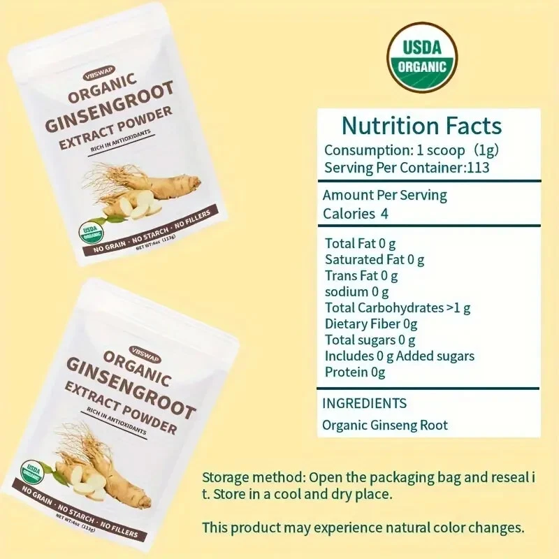High-Quality Organic Ginseng Root Extract Powder 4oz - 113 Servings. 15% OFF OFFER UNTIL JANUARY 10 FROM $18.99 TO $16.14