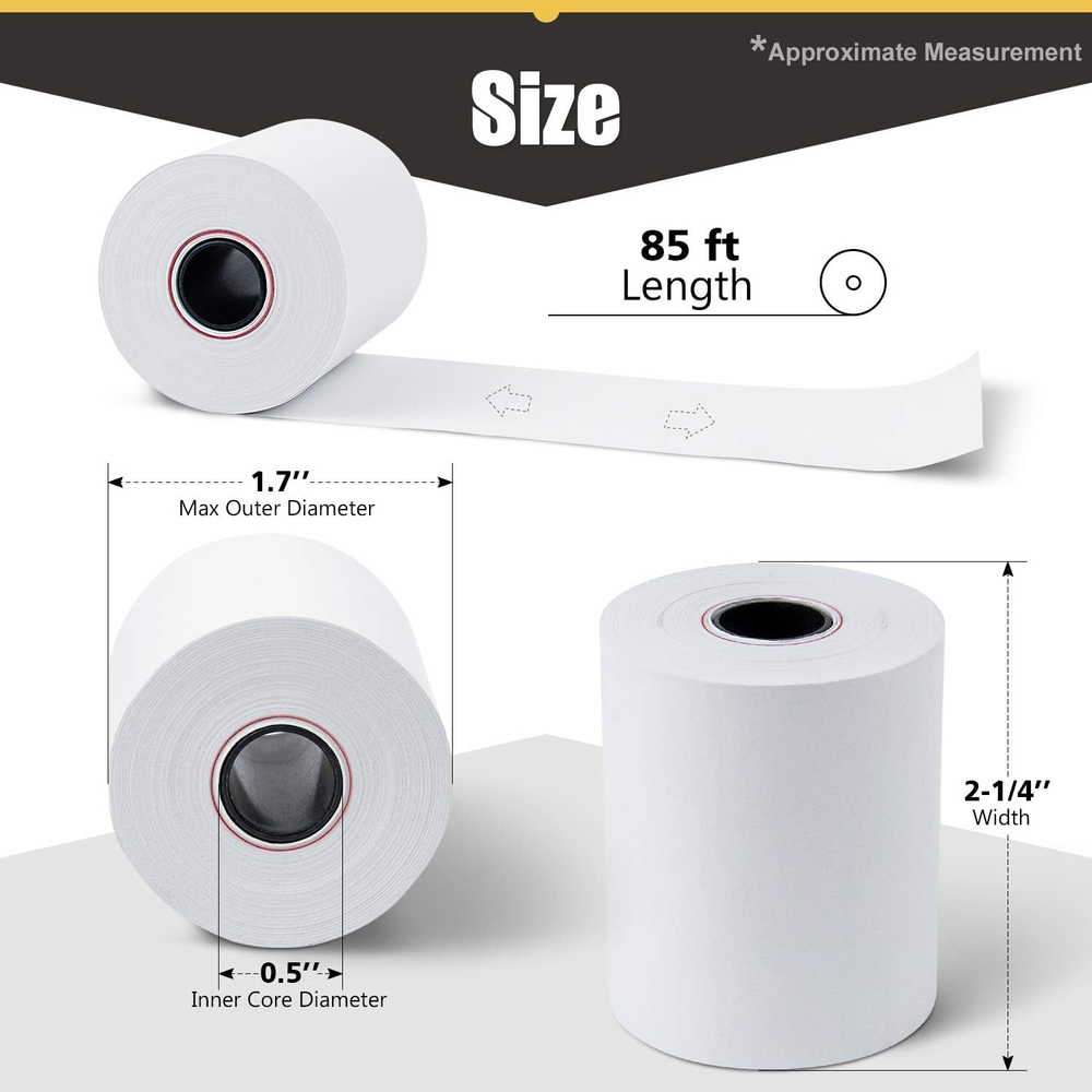 Store New Arrivals Add to Favorite View Feedback Contact , Thermal Paper 2-1/4 X 85Ft 100 Rolls, Fits Most POS Machines and Cash Registers, Great for Business Sales Description Item model number W.A21485X2_G9_R9021 Sheet Size 2.25 x 1020 inches Batteries required No Product Dimensions 48.89 x 9.89 x 5.3 inches Sheet Count 100 Country of Origin China Item Weight 17.16 pounds Color 100 Roll Paper Weight 80 Size 2 1/4" x 85' 2-1/4 X 85ft Thermal Paper Rolls 100 rolls 2-1/4"(W) x 1.7"(D) x 85ft(L) and 1/2' Inner diameter core High quality bright thermal paper provides deliver crisp, clear images Top quality POS receipt paper, per paper roll has an red end of warning signal Product Description ABOUT US We offer the best prices around on high quality products. Our E-store includes media such as books, movies, music and games while offering electronics, toys, sporting apparel, clothing, tools, general home, garden items and more. SHIPPING We are always working hard to ensure your package arrives as soon as possible. Please understand that some factors like weather, high postal traffic, and the performance of shipping companies are outside of our control. We offer free shipping to the lower 48 states and ship within 2 business days of payment, usually sooner. We do not accept P.O. Boxes. Please provide a physical address. For shipping outside of the continental USA, we only use eBay's Global Shipping Program.The item is shipped to KY and then sent to the rest of the world. International customers are responsible for all duties and taxes. Continue to check out in order to calculate costs for shipping the item to your country. Messages regarding eBay's Global Shipping Program MUST be directed at eBay EXCLUSIVELY. RETURNS We offer a 30-Day Return Policy on items which you are not completely satisfied with. You have the option for a full-refund or an exchange of the item. No returns are available on items shipped outside of the USA. PAYMENT We accept PayPal. CONTACT US This page content is yet to come Please ad us to your favorite seller and visit again later Thank You CUSTOMER SATISFACTION We try our very best to make sure every customer is completely satisfied. If there's a problem, message us! We're happy to help. WE ACCEPT Copyright © 2021 AutoDS. | All Rights Reserved