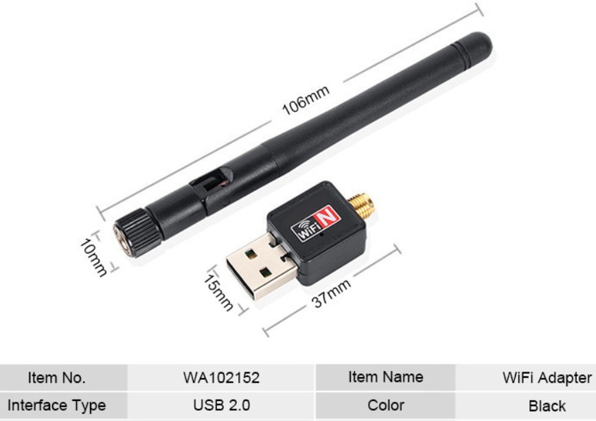 Product Description If you have any questions, please contact customer service first, do not open disputes easily, thank you! Specifications: Use 11N wireless technology, wireless transmission very fast, so that online video, online games, video chat and other high bandwidth requirements of network applications more fluent, and also makes data transmission in LAN more efficient. It can not only be used for ordinary desktops and notebooks, but also well compatible with mainstream IPTV set-top boxes, Internet TV, media players and other devices. Soft AP function and easy establishment of wireless LAN. Without the wireless router AP, the network card will be inserted into the computer and switched to the access point (AP) mode. Then it is equivalent to a wireless AP, which can support multiple computers or WiFi devices to share Wi-Fi. Item Name: USB WiFi Adapter Material: Plastic Standards: IEEE 802.11n, IEEE 802.11g, IEEE 802.11b Interface Type: USB2.0/1.1 Security: 64/128bit WEP Encryption, WPA/WPA2 and WPA-PSK/WPA2-PSK Encryption, WiFi Protected Setup (WPS) Operating Frequency: [FCC] 2412-2462MHz(Ch1-Ch11), [FTSI] 2412-2472MHz (Ch1-Ch13) RF Frequency: 2412-2462MHz (North America), 2412-2472MHz (Europe), 2412-2484MHz (Japan) RF Power: 20dBm (MAX EIRP) RF Range: Approx. 300 Meters LED Status: Link Status Activity Operating Temperature: 0 to 40 Centigrade Storage Temperature: -20 to 75 Centigrade Operating Humidity: 10% to 90% RH non-condensing Storage Humidity: 5% to 95% RH non-condensing Supported OS: for Windows Features: Portable, Wireless, Antenna, High Speed, Easy to Use Note: Due to the light and screen setting difference, the item's color may be slightly different from the pictures. Package Includes: 1 x USB WiFi Adapter 1 x CD About Us We accept all payments authorized by eBay. About Us We accept all payments authorized by eBay. powered by