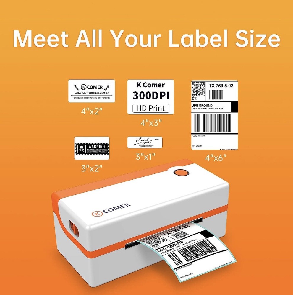 K Comer Shipping Label Printer 150mm/s High-Speed 4x6 Direct Thermal Label.