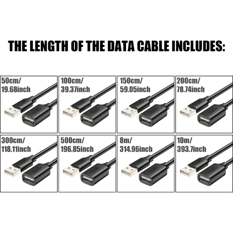 Features: Enhanceds your connectivitys with USB 2.0 Male to Female Extension Cable, for data transfer and charging across wide ranges of devices. from oxygenfree coppers, this extension cable features multiple layer shielding for superior interferences resistance, ensuring performances with every use. for enthusiasts and professionals alike, this cable for anyone needing extended reach for their desktop computers, laptops, or devices. Whether you're setting up a home office, enhancing your gaming, or simply need more flexibility in connecting your USB devices, this cable offers the solution. Available in multiple lengths from 50cm to 10m, the extension cable adapts to your specific needs, providing universal compatibility with devices like printers, cameras, USB fan, and more. Specifications: Materials: Plastic Cable length: 0.5m, 1m, 1.5m, 2m, 3meter, 5m, 8meter, 10m(optional) Package Includes: 1PC USB Extension Cable note: Please allow 0-1cm error due to manual measurement. make sure do not mind before bid. Due to the differences between different monitors, the picture may not reflect the actual of the item.