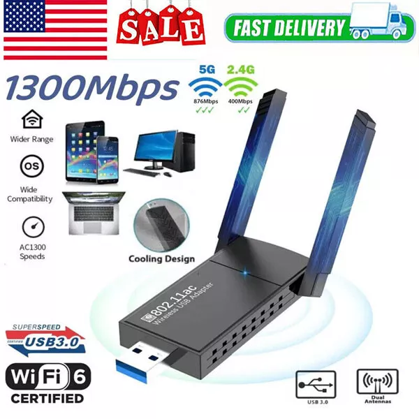 USB 3.0 Wireless WIFI Adapter 1300Mbps Long Range Dongle Dual Band 5Ghz Network ⚡ AC1300Mbps High WiFI SPEED 5G/2.4G - USB Wifi Adapter for PC, 802.11AC Wifi USB, Dual Band WiFi Dongle, up to 867Mbps on 5GHz band or 400Mbps on 2.4GHz band. ⚡ Dual High Gain WiFi Antennas - USB Computer Network Adapters with Dual 5dBi High-gain antennas greatly enhances the reception and transmission signal strength.180° rotatable antenna provides a stronger wireless transmission and receives signals from any angle. ⚡ Super USB 3.0 - WiFi adapter for PC/MAC, using the USB 3.0 interface.Works more stable and 10 times faster than USB 2.0, Wireless usb adapter brings 10 times faster and more solid wireless network connection. ⚡ MU-MIMO - Uses MU-MIMO technology to provide two simultaneous data streams. MU-MIMO technology boosts connection speed when multiple compatible clients are online. ⚡ Easy Setup and Online Setup Technical Support - Just plug and play usb wifi for Windows 10/11 (no drivers required) ,Awesome compatibility Simple for Windows and Mac : 1) Plug it in 2) Install the Driver and 3) Go enjoy the fast WiFi. Specifications: Color: Black Material: ABS Main Chip: RTL8812BU Wireless Standard: IEEE802.11ac/a/n/g/b Interface: USB 3.0 Antenna: External 5dBi Dual Antenna Transmission Distance: Indoor MAX: 100 Meters Support Protocol: IEEE802.11 Operating Frequency: 2.4Ghz / 5.0Ghz Wireless Transmission Rate: 11b: Max 11Mbps, 11g: Max 54Mbps, 11n: Max 400Mbps, AC: Max 867Mbps (1300Mbps Total) Wireless Security Support: WPA/WPA2/WEP/802.1X/WMM; Operating System: Windows / Mac Features & Tips The WiFi Adapter is equipped with high-gain dual 5dBi antennas and uses MU-MIMO technology to provide two simultaneous data streams. with a compatible MU-MIMO router, It can significantly increase the total network throughput and capacity, MU-MIMO technology boosts connection speed when multiple compatible clients are online. Our USB Wireless Network Adapter works with a number of operating systems. including PC Desktop Laptop for Mac ,Windows ,It is the perfect choice for you to watch HD videos and play online gaming.The USB WiFi Adapter is equipped with USB 3.0, can get faster speed. The USB WiFi Adapter can obtain faster speed by adjusting the freely rotatable WiFi antennas.The signal strength is not only related to the antenna gain, but also to the antenna receiving angle. The USB WiFi can adjust the antenna angle to a better signal receiving position according to the use environment. WiFi Antenna: When signal is weak, you can turn the antenna 60 degree tilt, the signal of USB WiFi Adapter for PC will better. The WiFi Adapter for Desktop PC speed max.speed up to 867Mbps just works when Wireless USB Adapter connect to 5G band. otherwise,The WiFi dongle will just run at the max.speed of 400 Mbps with 2.4G.Normally, your PC's network speed can't up to the WiFi USB adapter's speed as it depends on many factors,Such as the network size, router, laptop or desktop or PC 's internal memory. About Us: 1.We are a newly established shop, selling things you need, we have a variety of categories, a lot of products you can slowly walk around and choose. 2. No matter what kind of problems you encounter, you can consult me, we will patiently answer for you. 3. If you are not satisfied with the product you have purchased, please contact me at the first time, I will provide you with a solution. 4. If there is anything less than perfect in our products, please give us the opportunity to improve. We will continue to improve, to provide the best service! 5. We hope that all buyers of our products can have a pleasant shopping experience!