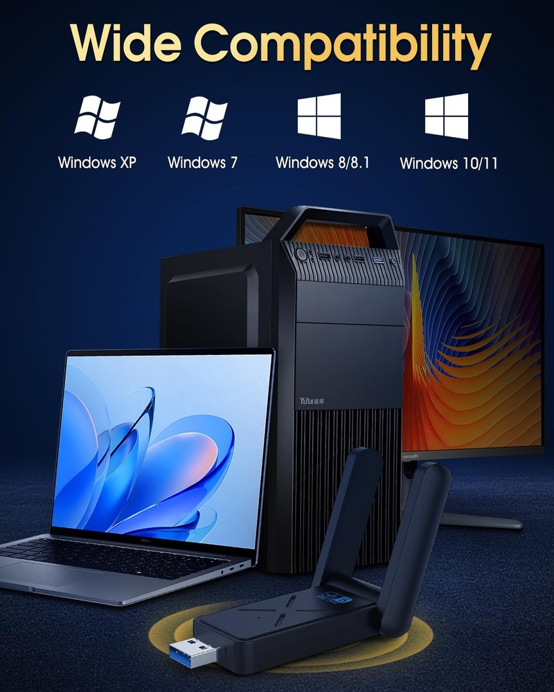 This WiFi adapter is a game-changer for my desktop! Super-fast speeds, no lag, and super stable connectionâperfect for streaming, gaming, and video calls. Super easy to set up, and it works flawlessly with Windows. The range is impressive, and the compact design is a plus. Highly recommend for anyone needing reliable, high-speed WiFi!