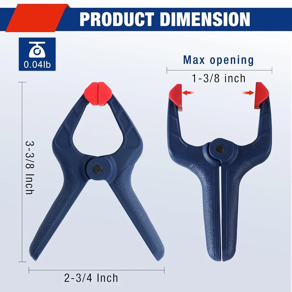 High-Strength 3-3/8" Spring Clamp Set - Versatile for Woodworking & Photography ‹ › ‹ › ‹ › ‹ › ‹ › ‹ › ‹ › ‹ › ‹ › High-Strength 3-3/8" Spring Clamp Set Versatile for Woodworking & Photography Product Features: High-quality Nylon: Our 16-piece spring clamp set is crafted from reinforced nylon, ensuring durability and a long-lasting hold. Flexible Jaw Pads: Equipped with rotating pads that adjust from 0 to 45°, allowing you to adapt clamping to various objects seamlessly. High-strength Spring: Guarantees a maximum opening of 1-3/8" with reliable clamping power for at least 24 hours. Anti-slip Grip: Features an ergonomic handle that provides a comfortable grip, reducing fatigue while enhancing your efficiency during use. Wide Applications: The perfect partner for woodworking, photography backdrops, and a plethora of DIY projects. Why Choose Our Spring Clamp Set? Elevate your woodworking and photography endeavors with our High-Strength 3-3/8" Spring Clamp Set . Made from high-quality, reinforced nylon, each clamp is designed to provide a durable and reliable hold. With flexible jaw pads that rotate to accommodate various angles and surfaces, clamping has never been easier. The ergonomic anti-slip grip ensures that you can work longer without discomfort, while the high-strength spring guarantees powerful clamping for extended periods, making it an essential tool for both professionals and DIY enthusiasts alike. Don’t compromise on quality—invest in our versatile spring clamp set and watch your projects come together with ease and confidence! Shipping Free & Fast Shipping - We offer free shipping to most of the USA with a normal delivery time of 3-7 days. However, due to the current situation, additional delivery time (up to 3 weeks) may be required for some items. Alternative Carriers - We may use alternative carriers (e.g. USPS, FedEx, UPS, etc.) to ensure your package arrives safely and on time. Due to the use of multiple carriers, we are unable to provide a tracking number automatically. Handling Time - Orders are processed and shipped within 1-2 business days of receiving cleared payment. Shipping Restrictions - Shipping to Alaska, Hawaii, Puerto Rico, Guam, and other US territories may incur shipping charges or delivery restrictions. Please contact us before ordering, or your order can be refunded/cancelled. State Restrictions - There may be restrictions based on your state of purchase. For example, certain items may not be shipped to California due to state regulations. Contact for Tracking Updates - If you require tracking updates or have any concerns about the delivery of your order, please feel free to contact us, and we will be happy to assist you. Return 30-Day Hassle-Free Returns - We want you to be completely satisfied with your purchase. If you are not, you can return the item within 30 days of receiving it for a full refund or exchange. Easy Return Process - To start a return, simply contact us and we will provide you with a prepaid return shipping label and detailed instructions. Restocking Fee - There are no restocking fees for returns. However, the buyer is responsible for return shipping costs if the return is not due to a seller's error. Refund Processing Time - Refunds will be processed within 5 business days of receiving the returned item in its original condition. Payment We accept all major credit cards, PayPal, and Apple Pay for your convenience. Your payment information is secure and encrypted to ensure a safe and seamless transaction. Please complete your payment within 3 days of purchase to avoid any delays in shipping. Feedback Your feedback is extremely important to us. We strive to provide the best products and customer service possible. If you are satisfied with your purchase, please take a moment to leave us a positive review. If you have any concerns or issues with your order, please contact us before leaving negative feedback. We are committed to resolving any problems and ensuring your satisfaction. Contact Us If you have any questions or concerns, please feel free to reach out to our customer support team. You can contact us through the eBay messaging system. We are available Monday to Friday, 9:00 am to 5:00 pm EST, and we will do our best to respond to your inquiry within 24 hours. Buy it now and enjoy a pleasant shopping experience! UPC: Not Set Model: Spring Clamp Set Item Width: Spring Clamp Set Item Length: Spring Clamp Set Item Height: Spring Clamp Set Item Diameter: 3-3/8 Item Weight: 12.3 ounces Unit Quantity: 16 Material: Nylon,Plastic Brand: Unbranded Type: Spring Clamp Number of Pieces: 16 Size: 3-3/8 in Jaw Size: 1-3/8 in Color: Blue Manufacturer Warranty: Not Set MPN: Not Set Country/Region of Manufacture: Not Set Unit Type: oz Personalize: Not Set