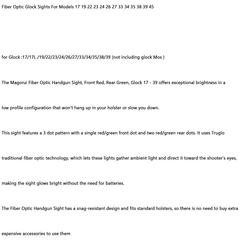These fiber optic Glock sights are a game-changer—bright, easy to align, and super durable. Perfect for quick target acquisition in any lighting. A must-have upgrade for serious shooters!