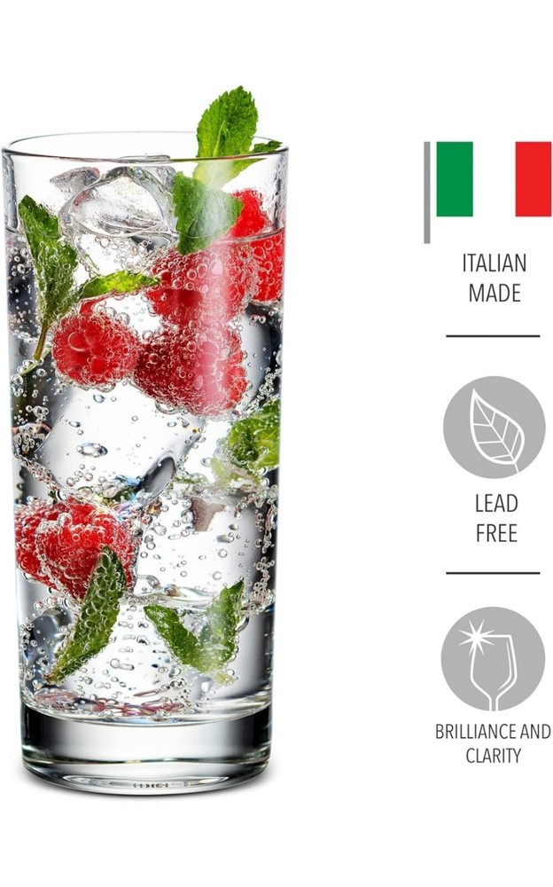 Highball Drinking Glasses, Italian Made Tall Glass Cups, Water Glasses Drinking Set, Cocktail Glasses – 14oz, Set of 4, Made In Italy Meticulously crafted in Italy these highball glasses tall drinking glasses will complete any barware collection. Contemporary sleek drinking glasses designed to enhance any décor. Modern yet timeless these will be your go-to glasses for serving any beverage from whiskey, bourbon, scotch and cocktails to wine, juice, and water in absolute style. Thick base adds stability and keeps the glasses from shattering while cylindrical shape is designed for a comfortable grasp and easy use. Wonderful gift set for holiday, birthday, wedding, housewarming or father’s day. ttt5ttMade in Italy – Lead Free – Dishwasher Safe – 14oz. Payment ●Payment must be received within 3 business days of auction closing. ●Please Note: Import duties, taxes and chargers are not included in the item price or shipping charges. These charges are the buyer's responsibility. Shipping ●Items will be shipped within 3 days after the cleared payment. All items will be checked carefully and packages in good condition. ●We will ship to ebay's address only. Please make ¬¬sure your address on ebay is the same with your shipping address before you pay. ●Shipping and Handling will be determined based upon the ship to address ●If you didn't receive your package, this time schedule, please do not hesitate to contact us. Within 24 hours we will try to update you with the latest tracking details of the shipment. Return and Feedback ●We sincerely hope that you can leave us a positive feedback. If, for any reason you are not satisfied with your purchase, please contact us through "Ask Seller Questions" before leaving neutral or negative feedback ●If you are not satisfied about your received item, please return it within 30 days for a refund. ●We will accept any return and give a full refund (without shipping cost) on any item. The item must be returned to us in original condition and the buyer need to pay return shipping cost