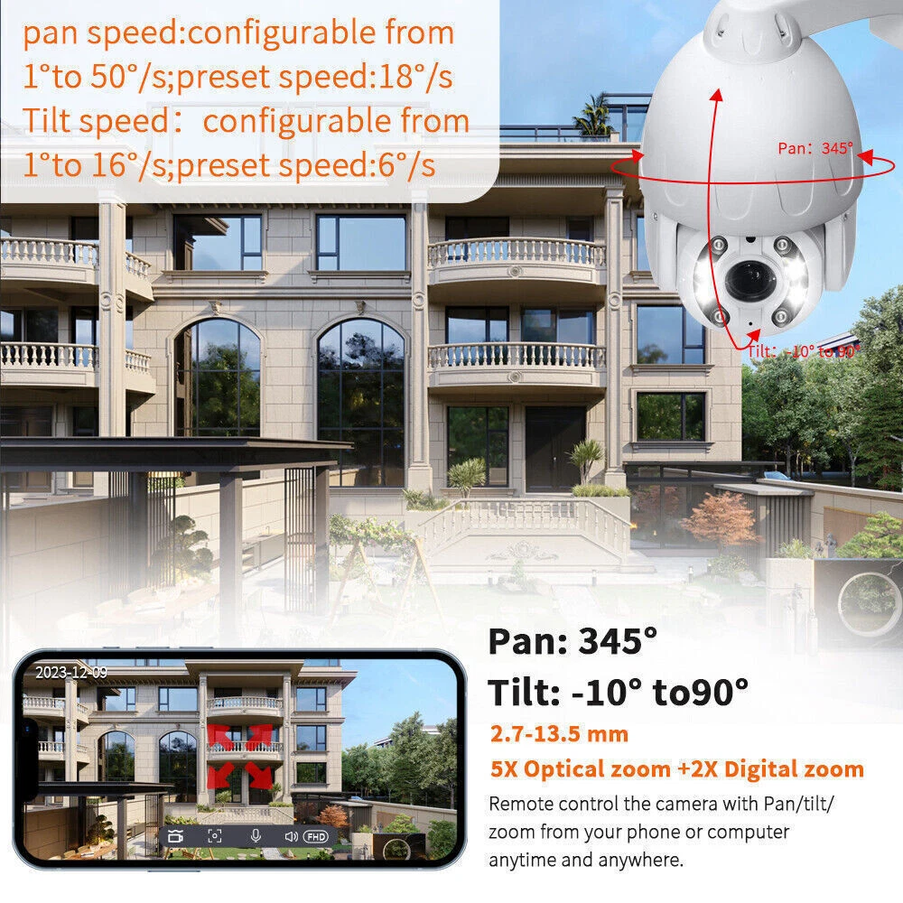 Key Features : 1/2.8" IMX415 CMOS 3840 × 2160@20 fps 2.7-13.5mm 5X Varifocal lens 2X Digital Zoom H.265+, H.265, H.264 F1.6-3.3 lens Built-in Mic & Speaker IR Light Range: up to 40 m White Light Range: up to 40 m WDR/HDR/3D DNR/HLC/BLC Water and dust resistant(IP66) Color: 0.01 lux @(F1.6), 0 lux with light Specifications: Camera Image Sensor 1/2. 8 " IMX415 CMOS Min. Illumination Color: 0.0 1 lux @(F 1 . 6 ), 0 lux with IR light Shutter Speed 1/10 s to 1/10,000 s Slow Shutter Yes Day & Night IR cut Filter Digital Noise Reduction 3D DNR 2D DNR WDR 120dB Lens Focal Length 2. 7-13.5 mm 5X Optical zoom +2X Digital zoom Aperture F 1.6-3.3 Lens Type Varifocal lens,motorized lens,2.7 to 13.5mm FOV horizontal FOV: 10 1 ° to 34 °, vertical FOV: 56 to 19 °, diagonal FOV: 125 ° to 37 ° Lens Mount M1 4 PTZ Movement Range(Pan) 345 ° Movement Range(Tilt) -10 ° to 90 ° Pan Speed pan speed:configurable from 1 ° to 50 ° /s;preset speed:18 ° /s Tilt speed Tilt speed : configurable from 1 ° to 16 ° /s;preset speed:6 ° /s Patrol Scan 8 patrols,up to 32 presets for each patrol Power-off Memory Yes Auto Tracking Human Tracking , Vehicle Tracking Illuminator White & IR Light Range Up to 4 0 m Smart Supplement Light Yes Compression Standard Video Compression Main stream: H.265 +/H.265 /H.264 Sub-stream: H.265 + / H.265/ H.264 H.264 Type High Profile / Main Profile/ Base Profile H.265 Type High Profile / Main Profile/ Base Profile H.265+ High Profile / Main Profile/ Base Profile Smart Feature-set Smart Event Human detection, Vehicle detection Basic Event Motion detection Linkage Method Trigger recording: network storage, pre-record and post-record Trigger captured pictures uploading: FTP, Email Trigger notification: FTP , Email Image Max. Resolution 3840 × 2160 Main Stream 50Hz: 20@FPS(3840 × 2160),30FPS@(3072 × 2048,2592 × 1944,2560 × 1440,2304 × 1296 ) 60@FPS(1920 × 1080 , 1280 × 720) ; 60 Hz: 20@FPS(3840 × 2160),30FPS@(3072 × 2048,2592 × 1944,2560 × 1440,2304 × 1296 ) 60@FPS(1920 × 1080 , 1280 × 720) ; Sub-Stream 50Hz: 30 fps ( 720 x 480, 640 × 480, 640 × 360, 480 × 480,480 × 360,CIF ) 6 0Hz: 30 fps ( 720 x 480, 640 × 480, 640 × 360, 480 × 480,480 × 360,CIF ) About Us Payment and Shipping: 1. we only accept PayPal payment. 2. We will ship your order within 5 days. Please make sure your shipping address and phone number are correct. Returns 1. If the item arrives with defects or errors, before you start the return process, please contact us via ebay message and we will provide you with a satisfactory solution. Communication is always the best way to solve problems. 2. If you do not receive your item on time, please contact us for further assistance. Feedback and Contact Us 1. we always try to provide every customer with the best service and the best quality products, but sometimes there may be accidents, if you are not satisfied with our goods or services, please feel free to leave a message to contact us, we believe we can solve all the problems for you. Please do not feel free to leave negative feedback. 2.If you are satisfied with our products, we also hope you can give us a five-star positive feedback. We will be grateful for that. About tariffs 1. Import duties, taxes and charges are not included in the item price or shipping cost, these charges are collected by the customs of your country. Buyers are responsible for paying import duties and taxes themselves, as stipulated by eBay. 2. Please check with your country's customs office before purchasing to determine these additional customs fees.