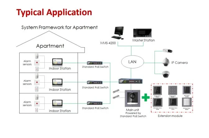 KH6 Series IP-Based Indoor Station 7-inch TFT touch screen with 1024 × 600 resolution Convenient Hik-Connect APP Mobile Control Receive calls, open the door and live view remotely Easy to use without PC Easy wizard for quick set up Configure the whole system on one touch screen Live view of the door station and cameras in public areas Support voice messages when no response from the indoor station Receive alarms by linkage with a alarm system and notify the center to handle in time Elevator access control System parameters Operation system Linux ROM 32 MB RAM 128 MB Processor Embeded high performance processor Display parameters Screen size 7-inch Operation method Capacitive touch screen Type Colorful TFT Resolution 1024 × 600 Video parameters Lens / Resolution / FOV / Wide dynamic range (WDR) / Video compression standard / Focal length / Audio parameters Audio input 1 built-in omnidirectional microphone Audio compression standard G.711U/G.711A Audio output 1 built-in loudspeaker Audio compression bitrate 64 Kbps Audio quality Noise suppression and echo cancellation Volume adjustment Adjustable Capacity Message capacity TF card inser ted: 200 captured pictures, 200 alarm records Without TF card: 2 MB RAM for picture storage; The storage number is decided by the picture size, 200 alarm records Notice capacity 200 Linked indoor extensions capacity 16 Linked doorphone capacity 17 Linked network camera capacity 16 Network parameters Network protocol TCP/IP, SIP, RTSP Wi-Fi 2.4 GHz, IEEE802.11b, IEEE802.11g, IEEE802.11n Bluetooth / 3G/4G / Zigbee / Device interfaces Alarm input 8 Network interface 1 RJ-45 10/100 Mbps self-adaptive TAMPER / RS-485 1 RS-485 (Half duplex) USB / TF card Support TF card, up to 128 G Alarm output 2 Lock control 2 relays, Max. 30 VDC 0.3 A General Button / Installation Surface mounting Indicator / Weight Net weight: 355 g (0.8 lb) Gross weight: 683 g (1.5 lb) Protective level / Working temperature -10 °C to 55 °C (14 °F to 131 °F) Working humidity 10% to 90% (no-condensing) Dimension (W × H × D) 200 mm × 140 mm × 15.1 mm (7.9" × 5.5" × 0.6") Battery / Application environment Indoor Power consumption ≤ 5 W Language English, Russian, Bulgarian, Hungarian, Greek, German, Italian, Czech, Slovak, French, Polish, Dutch, Portuguese (Brazil), Spanish, Hebrew, Romanian, Turkish, Estonian, Danish, Swedish, Norwegian, Finnish, Vietnamese, Croatian, Slovenian, Serbian, Arabic, Portuguese (Portugal), Lithuanian, Uzbek, Kazakh, Mongolian, Ukrainian