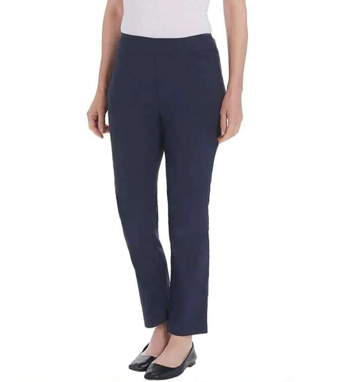 Hilary Radley Women's Mid Rise Slim Leg Built-in Tummy Control Pants Size: Small Color: Navy Content: Shell: 76% Rayon / 20% Nylon / 4% Spandex Mesh: 77% Polyester / 23% Spandex