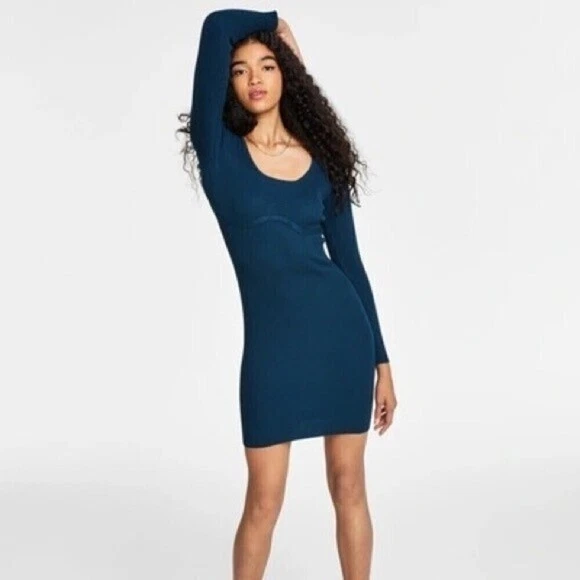 Hippie Rose balances feminine flair and cozy comfort with this juniors' body con sweater dress. Accessorize with stylish jewelry and fashionable scarves to showcase your own unique style. Approx. model height is 5'10" and she is wearing a size medium Bodycon: fitted through the chest, waist, and hips; sweater dress: heavier knit dress for warmth and comfort Scoop neckline Pullover styling Rayon/polyester Machine washable Imported Web ID: 1319793