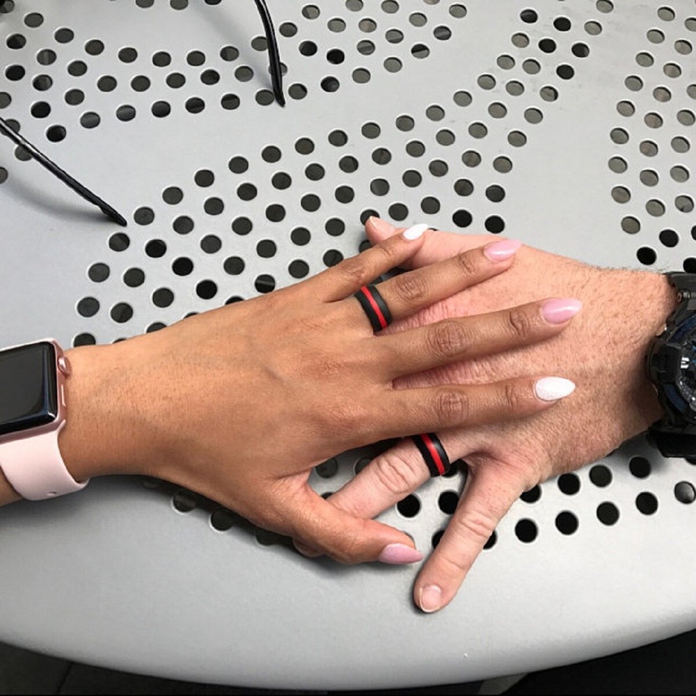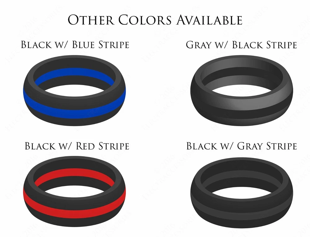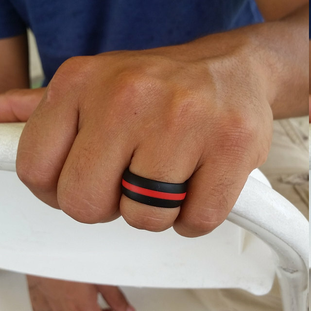 His & Hers Thin Red Line Silicone Wedding Band Engagement Ring Flexible Hypoallergenic Athletic Active Wear Size 5, 6, 7, 8, 9, 10, 11, 12, 13, 14, 15 Brand New Made, Sold and Shipped from the US 30 Day Risk Free Purchase (Details Below) Free Free Same Day Shipping Silicone Rings run a little smaller than traditional wedding rings, when in doubt order 1 size up. Please see the size scale image for ring measurements. For More Silicone Wedding Ring Sizes, Styles and Colors Please Click Here The High-Performance Thin Red Line Silicone Wedding Ring is designed for high speed athletes, an active lifestyle and/or an active work environment. Safe to wear in any environment, perfect for those working with their hands such as Doctors, Construction, Police, Electricians, Firefighters, Mechanics, Military, and can be comfortably and safely worn during exercise, crossfit, cycling, swimming, running and playing sports. Made from only the Highest Quality, BPA Free, Hypoallergenic, Food Grade Silicone. Breathable, Lightweight, Flexible, Non-conductive, Non-toxic, Waterproof and Heat-resistant 9mm Wide and Less Than 2mm Thick - You'll Forget You're Wearing It! No Shameless Promotional Logos or Branding New Tapered Design Doesn't Have a "Mini Tire" or "Rubber Gasket" Look Eco-Friendly Production and Materials In the US Alone, Over 150,000 Wedding Ring Related Injuries & Amputations Occur EVERY YEAR . All of which could have been prevented by wearing our rings. Perfect Fit Guarantee: If your ring doesn't fit you perfectly just let us know and we will exchange it with a brand new ring for the cost of a postage stamp! 30 Day "No Questions Asked" Money Back Guarantee: If for any reason you are not 100% satisfied with your purchase you may return your order within 30 days of arrival for a full refund. 100% Feedback / Customer Satisfaction Perfect Fit Guarantee 30 Day "No Questions Asked" Money Back Guarantee Buy with Confidence! AERA Rings Thin Red Line Silicone Wedding Rings with Free Shipping eBay's #1 Best Selling and Highest Rated Silicone Wedding Ring Brand Designed for high speed athletes and/or active lifestyle/work environment. These high performance silicone wedding rings allow you to wear at all times and never again have to remove (or possibly lose) your wedding band again. Made with only the toughest, most durable and safest silicone. Sizes (5 - 15) Width: ~9mm Thickness: < 2mm Handmade, Sold and Shipped from the US Solid One-Piece Design - Not 3 Pieces Weakly Glued Together Free USPS Expedited Shipping With Tracking! Perfect Fit Guarantee! 30 Day Risk Free Purchase! ***Product Specs*** Most popular alternative to traditional wedding bands. The unique rounded design and beveled edges set this Silicone Wedding Ring Band apart from other silicone bands; doesn't have that "Mini Tire" or "Rubber Gasket" look. Can be comfortably and safely worn while playing sports, biking, swimming, running, golfing, lifting weights, crossfit, etc. Great for the outdoors activities such as fishing, hunting, camping, climbing, hiking, etc. The best way for construction workers, firefighters, electricians, military, police officers, doctors, nurses, and anyone else working with their hands to safely wear their wedding band while on the job. Made from only the highest quality, Eco-friendly, BPA free, hypoallergenic, medical/food grade silicone. Breathable, lightweight, flexible, non-conductive, non-toxic, waterproof and heat-resistant! Safety Break Away Design under extreme resistance to avoid damage or loss of your finger (Google "Wedding Ring Injuries" ONLY IF YOU HAVE A STRONG STOMACH for injuries which would have been prevented by wearing our rings). ***Warranty & Returns*** Perfect Fit Guarantee: If your ring doesn't fit you perfectly just let us know and we will replace it with a brand new ring that fits just right! 30 Day Risk Free Purchase: If for any reason you are not 100% satisfied with your purchase you may return your order within the first 30 days for refund.