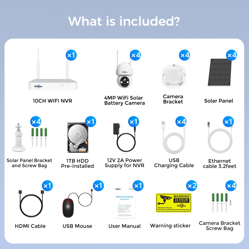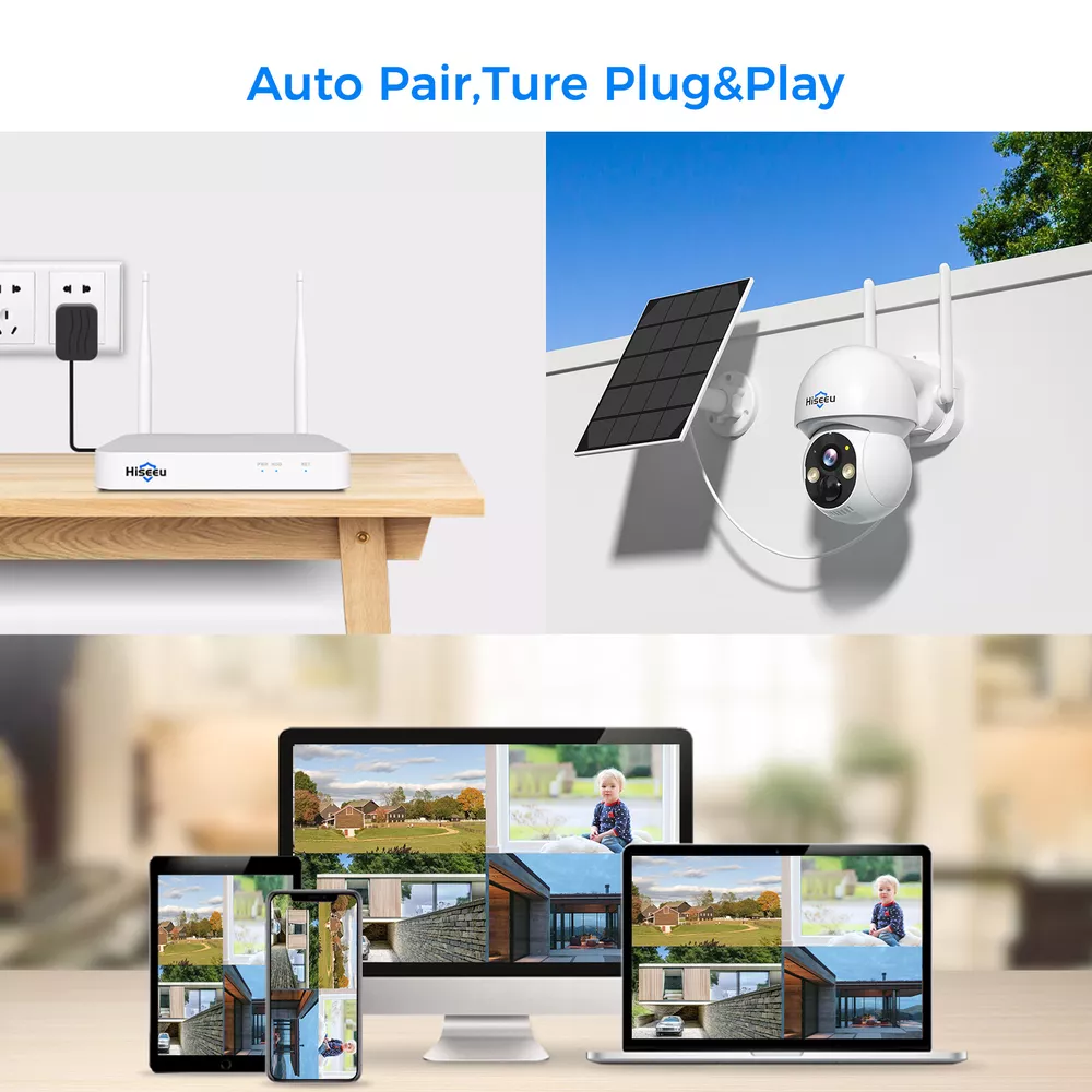 please note ,this wireless cctv system work with 2.4G wifi . this camera not 24h recording .it is PIR motion detect recording . Please note : 1.When the camera detects an animal or person entering the detection area, it will be awakened and enter recording mode. If there are no people triggering it in the environment,the camera will enter sleep mode. 4MP HD Picture Quality Day and Night You won't miss any event around your house with CMOS image sensor, the camera provides you with clearer and smoother video, two modes of night vision system lets you see all the details within 65 feet clearly even at night. PIR Detection Technology PIR sensing technology, don't worry about receiving false positives caused by flying insects etc, it will push an alarm notification to you when detect humans' movement. When the camera detects people, the camera will enter the recording mode, when no people are detected, the camera will enter the sleep mode to store power, the working mode of this camera is not 24H recording. Two-Way Audio Function This camera built in mic and speaker,you can chat with Neighbors or visitors, also can scare off unwelcome people through light alarm and sound alarm . 100% Wire-Free and Solar Powered The solar security camera comes with a built-in high-capacity rechargeable battery, fully charged through the solar panel or USB cable.The camera will be in a sleepy mode until detect motion, it will work for about 30 days after fully charged. APP Remote & 360° View The Wireless WiFi camera can work with NVR box, phone APP, computer, Alexa. 120-degree field of view and PTZ feature provide you with no blind spot surveillance, real-time viewing monitoring no matter wherever you are. Smart Playback & Share with Family The camera kit comes with a 1T HDD, all recording will be stored in it, you can view the playback anytime. Share the camera to you family through "Eseecloud" APP. All images are encrypted, no one can access the information without your consent. IP66 Waterproof Professional out battery camera work even in storm .