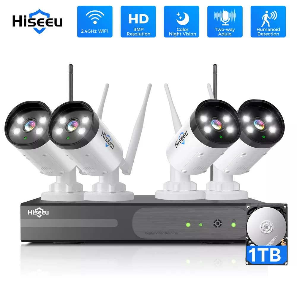 【DC12V Power Plug-in & Easy Setup】Wireless means camera and NVR is wireless connection,camera(No battery) and NVR still need work with power cable. The wireless video security system is easy to setup and DIY installation (need DC 12V plug power supply),these WIFI cameras are paired with NVR at manufacturing site.Connect PC/TV monitor to NVR by a VGA/HDMI cable.Finally power on and serve yourself with 24/7 surveillance,true plug and play. 【Stunning 2K Ultra HD video & One Way Audio】 3.0MP presents 2304*1296 Mega Pixels about 1.5 times clearer than 1080P. Camera with 3 array Infrared LED allows you to see up to 65ft night vision even in darkness. Employing IP66 Waterproof metal material housing, cameras can be used indoor and outdoor. Outdoor security camera system also allows you to see a Hiseeu WIFI Wireless Security Camera System Audio 10CH NVR 3MP CCTV Kit Lot Please note :this listing have many types cctv system ,pls select which you need one . About this item: [All-in-one 10 inch LCD Monitor, Easy Setup] The wireless security camera recorder equipped with 10 inch screen monitor(Not touch screen), 1296P full HD display clear image which view angle will be more widely. The cameras and NVR monitor are auto-paired during the factory setting. Just need to connect the wireless cameras and NVR with power supply provided for 24/ 7 surveillance purposes. Wireless means camera and NVR is wireless connection, camera and NVR still need work with power cable. [Expanable 8 channel cameras] This 8CH 1296P (2304*1296) 10 " LCD Monitor NVR wireless camera system up to work with 8pcs cameras, supported original kits’ one way audio camera, two-way audio camera,PTZ camera and battery camera.Meet all your needs. [Stunning 2K Ultra-HD video, one Way Audio] 3MP presents 2304*1296 Mega Pixels about 1.5 times clearer than 1080P. Camera with 3 array Infrared LED allows you to see up to 65ft night vision even in darkness. Employing IP66 Waterproof metal material housing, cameras can be used indoor and outdoor. Outdoor security camera system also allows you to see and listen to people on your property remotely. [1TB HDD Storage, Remote Playback] With pre-installed 1TB HDD, it can keep around 30+ days of 24/7 videos for 4 cameras simultaneously without overwriting. With FREE Eseecloud APP, for android and iPhone, all videos in the HDD can be playback remotely in your hand anywhere anytime. 8 channel NVR comes with advanced H.265+ compression ensures more stable and clearer viewing experience, saves 50% hard drive capacity. [AI Human Detection] Reduces false alarms -- Compared with the traditional motion detection alert, the Hiseeu 3MP camera adopt more advanced AI human detection technology in 2021. Advanced AI technology for home security camera systems distinguishes humans from animals or objects within the monitoring range reducing false alarms. When an intruder enters the monitoring range, the screen will display the human frame will be triggered. Notice: The wireless system doesn't mean you can use the system without any cables. Power supply still needed to power on the cameras and NVR. WIRELESS SURVEILLANCE NVR KIT NVR Features 8CH 2K wireless NVR recorder with 10 " LCD monitor and 1TB hard drive pre-installed Support Android/IOS/PC remote view, remotely check the system on phone or computer, please connect the NVR with router by Ethernet cable or wireless connection (doesn't support 5G wifi connection) Power dissipation: ≦ 5W Package 1 : 1 x 8Ch 1296P NVR with 10 " LCD monitor pre-installed 1TB surveillance hard drive 1 x 3.3ft power supply (12V-2A) for NVR 4 x 2K wireless securty cameras 4 x 10ft power supply (12V-1A) for cameras 4 x screw bag (for camera) / camera antenna 1 x user manual / USB Mouse / 3.3ft network cable 2 x surveillance warning notes Payment Delivery details Terms of sales About us Contact us Payment 1. All payments must be prepaid. 2. We only accept payment via Paypal. Please kindly check if you can pay via PayPal before placing order. Delivery details 1. packages will be sent out within the same day or 1 working days after the payment is received. 2. Orders place on the weekends will be shipped out on next Monday or Tuesday (holidays excluded). 3. Local pickup is not available. 4. We regret that we can not be responsible for any wrong or undeliverable addresses. 5. We'll pay for export custom tax,Buyer should pay for import custom tax if needed. Terms of sales 1. We automatically submit positive feedback to our buyers once the order is finished. 2. If you are satisfied with our product, please leave Positive Feedback , which means a lot to us, thanks in advance. 3. PleaseDo not leave Negative or Neutral Feedback before Contacting us, leave negative feedback can not solve any problem, but we will work with you to resolve those problems. 4. Please feel free to contact us viaEbay Message or E-mail.We generally reply messageswithin one business day, butexcept holidays. About us 1. We guarantee against any defective products. 2. We provide 30 days money back on non-defective, undamaged, unused and resalable products. Restocking fee and other fee may apply upon the condition of returned products. Shipping and handling fees are non-refundable. Product is not eligible for refund after the 14-day refund period is expired. 3. For any returned product, please contact us through ebay message firstly, we will work on resolving your particular case ASAP. Contact us If you have any question please feel free to contact us, we will respond within 1 business day or less, except holidays.