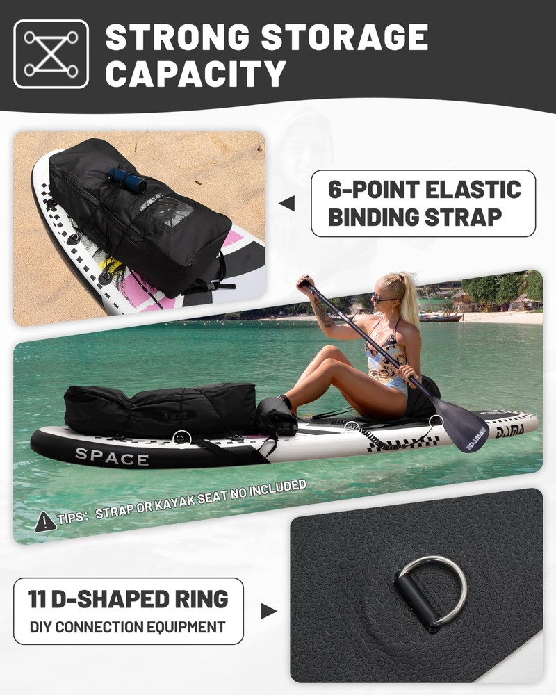 Absolutely love this paddle board! It’s super lightweight and easy to carry in the included backpack, making it perfect for quick trips to the lake or beach. Despite being inflatable, it feels incredibly sturdy and handles weight up to 350lbs without a problem. The non-slip deck keeps me steady while paddling, and the compact storage is a game-changer. Great for beginners and pros alike—super fun and hassle-free!