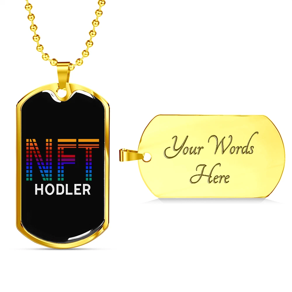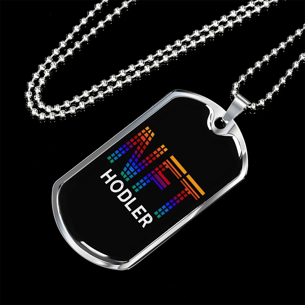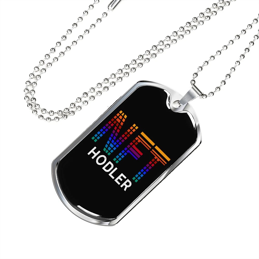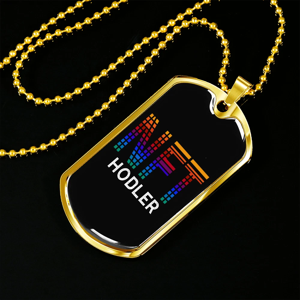 Hodler Necklace Stainless Steel or 18k Gold Dog Tag 24" Chain