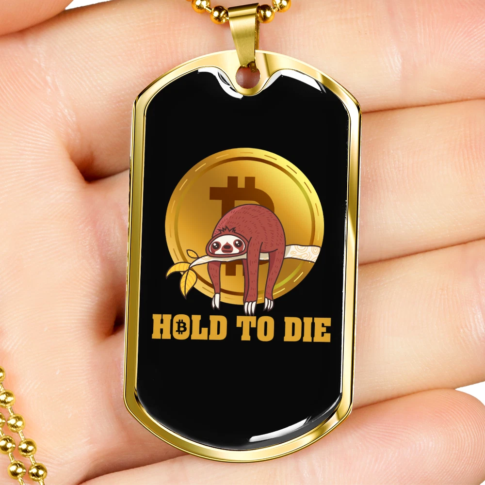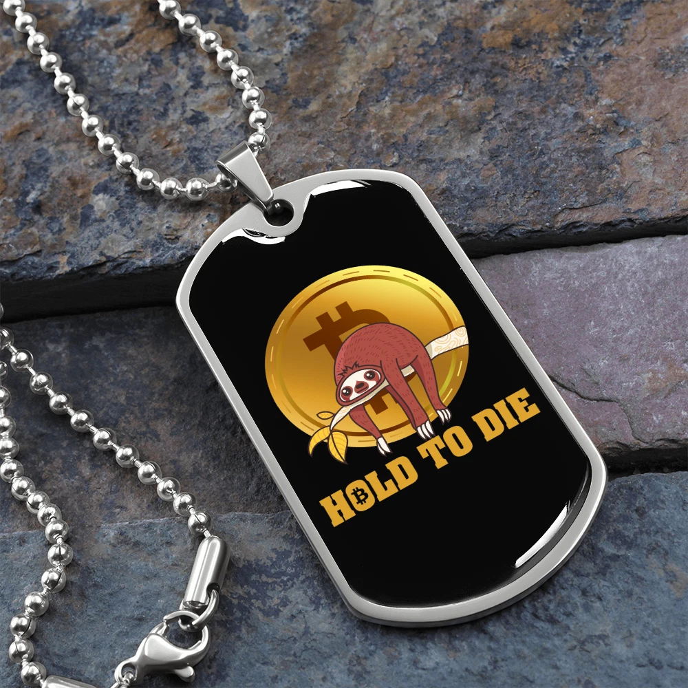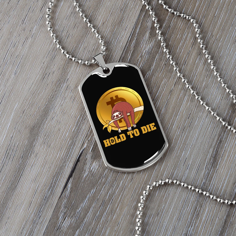 Get On The Block Crypto Necklace Stainless Steel or 18k Gold Dog Tag 24" Chain