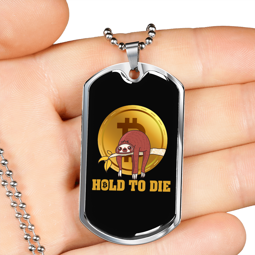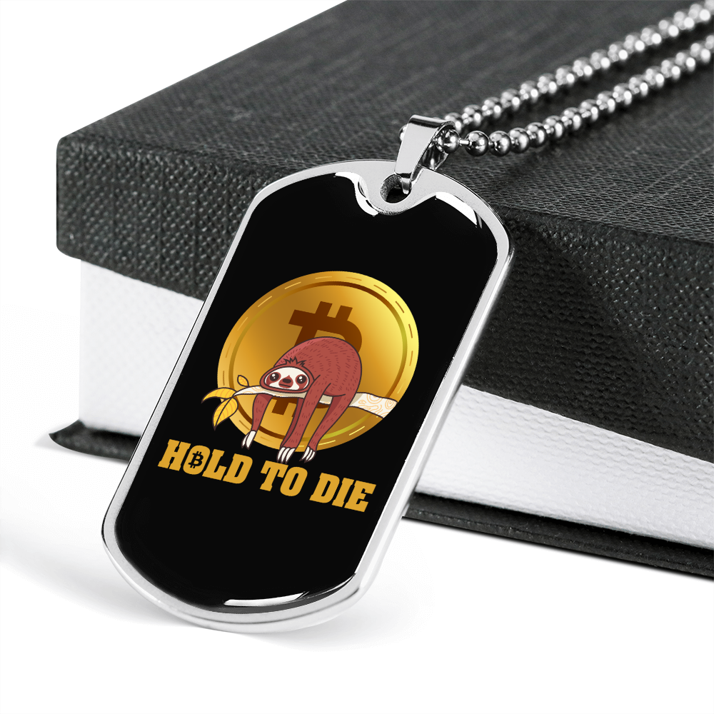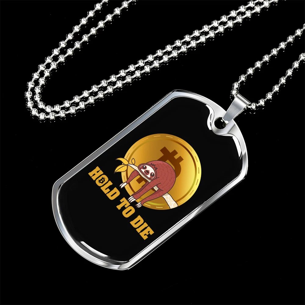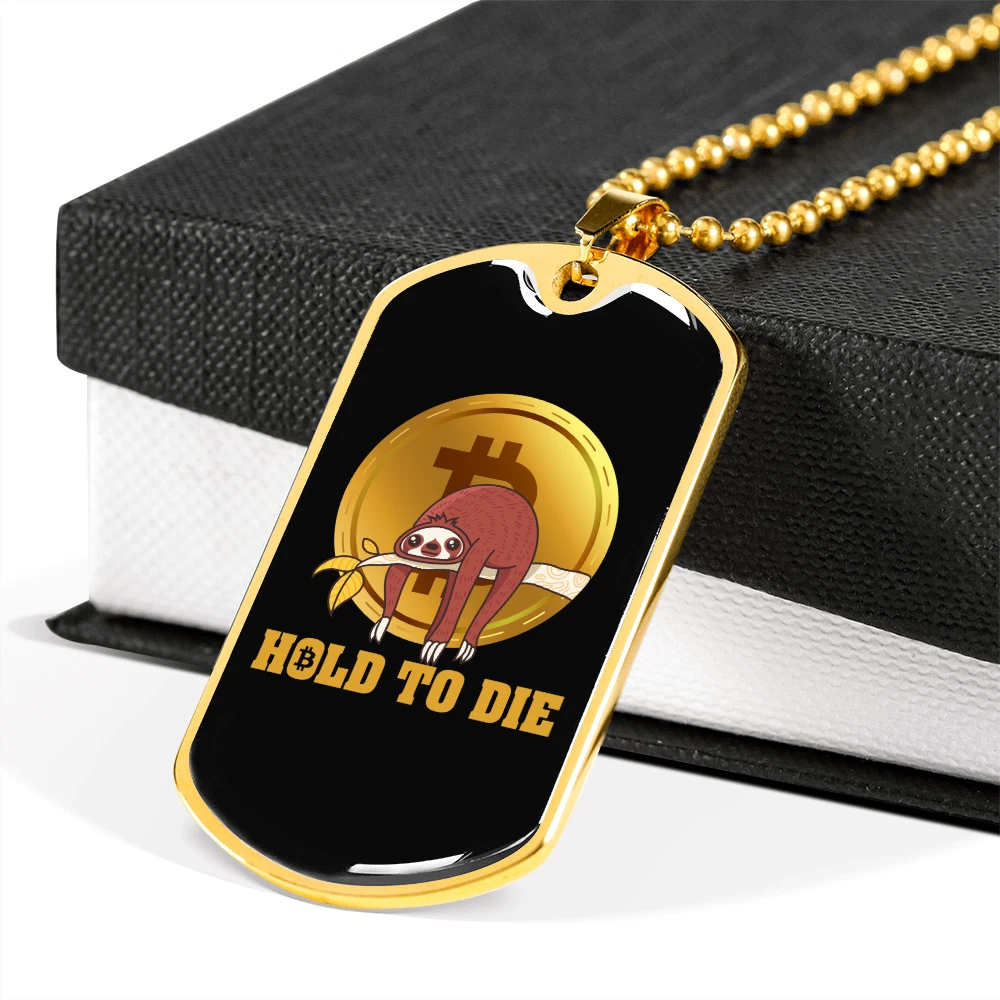 Get On The Block Crypto Necklace Stainless Steel or 18k Gold Dog Tag 24" Chain