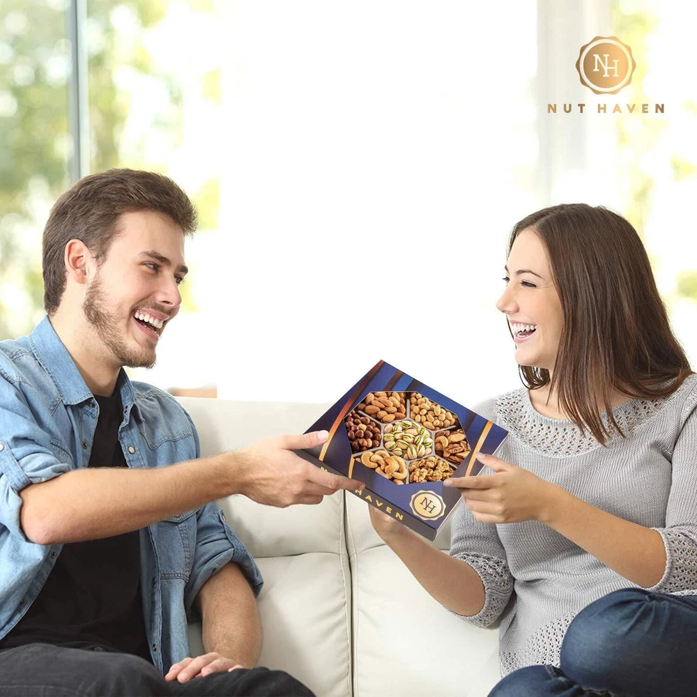 ★You’d be absolutely nuts not to try our exceptional nuts! The most discerning customers – prestigious corporations, retail outlets, and hospitality venues – choose gift baskets because they know that no corners are cut. Simply, We are proud to hear from our customers that “gift baskets look the best and taste the best“ ★Now, you and your loved ones can enjoy them too! A gift basket is the perfect choice to send best wishes and love to anyone, for any occasion: “I love you”; “Happy Birthday”;“Happy Anniversary”; “Happy Holidays”; “We appreciate your business”; “You have been selected as Employee of the Year”; “Get Well Soon”; “It’s a Boy!”; “It’s a Girl”; “I’m Sorry”...They all sound better – and taste better! – with . ★There are nuts…and then there are nuts! A Bunch of nuts in a batch may look the same to most of us, but the mavens at know the difference between a typical nut and spectacular nut. The only nuts that make it into a basket are those that are naturally rich in taste and texture and have been roasted to perfection along with that perfect flavor. ★Freshness is not a preference; it’s a ! This Healthy gift basket features a wide variety of hand-picked tasty nuts. The nuts are dry roasted in small batches with no oil or preservatives and even seasoned giving you a perfect bite every time. ★ We go the extra mile so you can taste the difference. There’s a assortment of Dry Roasted Salted Peanuts, Dry Roasted Salted Almonds, Dry Roasted Salted Pistachios, Dry Roasted Salted Cashews, Raw Walnuts, Hazelnuts, and Mixed Nuts. Click the “Add to Cart” button now, and the magicians at will send a friend, family member, or colleague a delicious box of nuts in a couple days! 🎁 ELEGANTLY PACKAGED GIFT BASKET LOADED WITH TASTY NUTS - Forget flowers and chocolate, give a gift that’s delicious and healthy! In this bundle pack of Healthy Snacks, you get approximately pound of tasty nuts meticulously packaged in a boutique-style gift box. 🥜 VARIETY OF FRESH TASTY NUTS FOR EVERYONE TO ENJOY – The deluxe mixed nut box contains Roasted Salted Peanuts, Roasted Salted Almonds, Roasted Salted Pistachios, Roasted Salted Cashews, Raw Walnuts, Roasted Salted Hazelnuts, and Mixed Nuts. SPECIFICATIONS – Package dimensions: 10x10x1.3. Net weight: Approximately 1LB. OK Certified, Vegan. 👌 THERE ARE TREATS... AND THEN THERE ARE TREATS! - Batches of nuts may look the same to most of us, but the mavens at know the difference between a typical treat and a edible delight. The only items that make it into a basket are carefully selected nuts that are naturally rich, ideally textured and roasted OR sweetened with the perfect flavor. 💝 MOUTH-WATERING GIFT IDEA FOR A VARIETY OF OCCASIONS – Out of this world gift idea for any occasion like Corporate Events, Holidays, Birthdays, Christmas, Thank You, Sympathy, Get Well, Father's Day, Mother’s Day, Easter, and more!