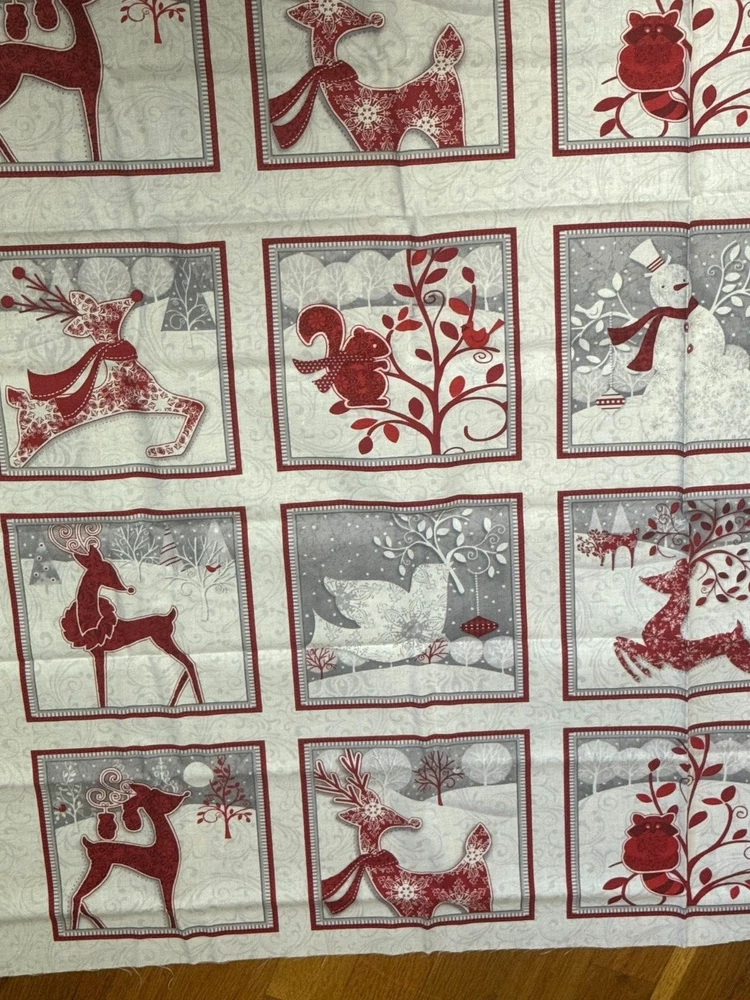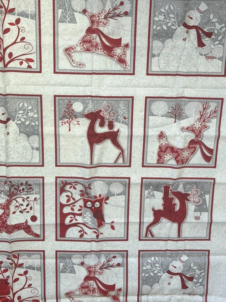"Holiday Frost Deer & Wildlife " LARGE Cotton Fabric Panel 46 " x 44" by Henry Glass Beautiful Reds & Grays Blocks each measure 6-3/4" square I send my orders out the same day whenever possible so you get your items quickly.