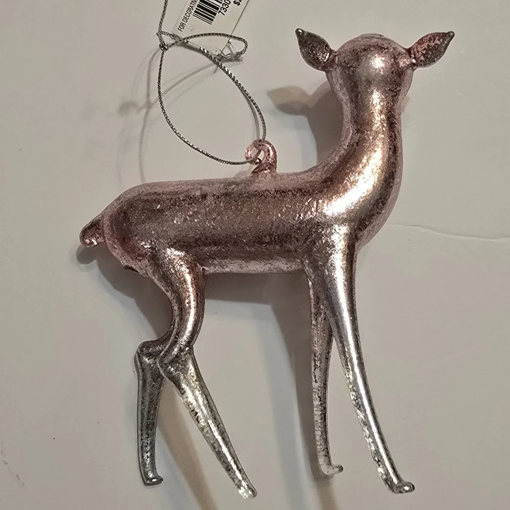Product details The reindeer, a timeless icon of the winter season gets a fresh update with the metallic pink finish of this glass ornament from Holiday Lane's Sugar Plum collection. Approx. dimensions: 3.75"L x 1.75"W x 4.25"H Glass Spot clean The reindeer, a timeless icon of the winter season gets a fresh update with the metallic pink finish of this glass ornament from Holiday Lane's Sugar Plum collection. Approx. dimensions: 3.75"L x 1.75"W x 4.25"H Glass Spot clean