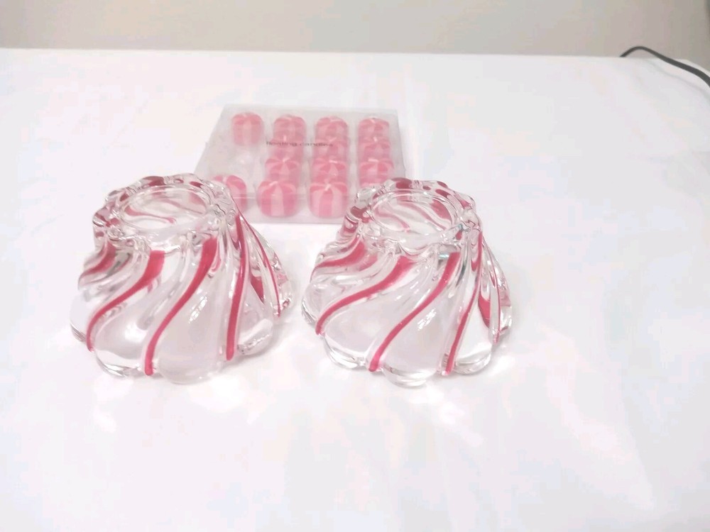 I don't know what brand these are. They could be Mikasa or the Studio brand. I am including 14 peppermint votive floating candles to go with them. They could fit at least 3 per candle holder. Please contact me with any questions. Thanks for browsing at The Pennsy Picker store. C54